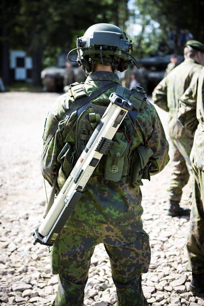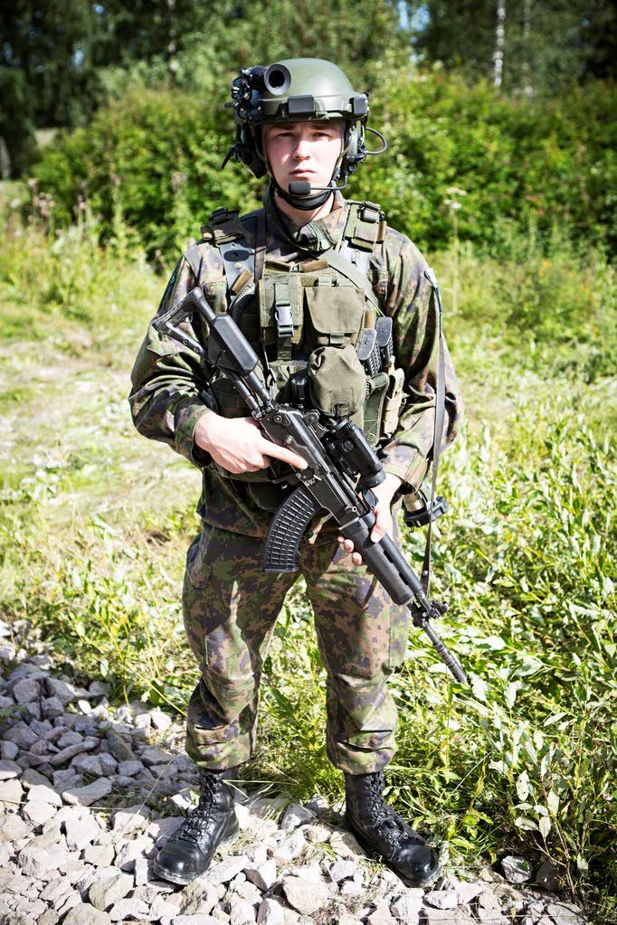 Soomlaste uuest kiivrist, kuhu on külge ehitatud raam sidevahendite, kuulmiskaitsete ja NV kinnitamiseks, ma pikemalt kirjutama ei hakka, see on siit koos lähivaadetega juba läbi jooksnud. Oluline vaid lisada, et see kiiver ei ole veel massilises kasutuses, seda on tellitud mõnesajane proovipartii, mida siis Kaarti Jäägrirügemendis, Uttis ja välismissioonidel edasi testitakse. Fotodel olev mees on Panssariprikaati õlamärgiga, ülejäänud varustuse järgi pakun, et mitte tankist, vaid panssarijääkäri ehk see mees, kes tankide järel jalaväe lahingumasinas liigub. Kindlasti Soome KJ nn äkilisema väljaõppega seltskond.
