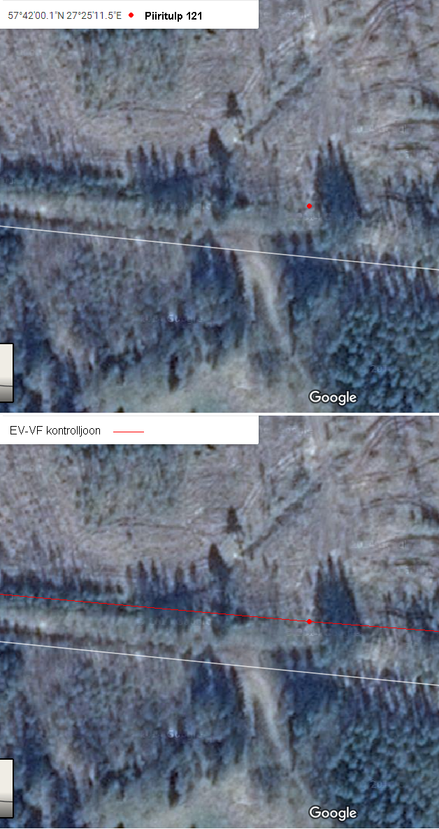 Ma nüüd ei tea, kas Eesti ja Vene piirmärkide numbrid klapivad, aga selles dokumendis(https://www.riigiteataja.ee/aktilisa/11 ... _lisa1.pdf#) 121 piirmärk on koordinaatidel