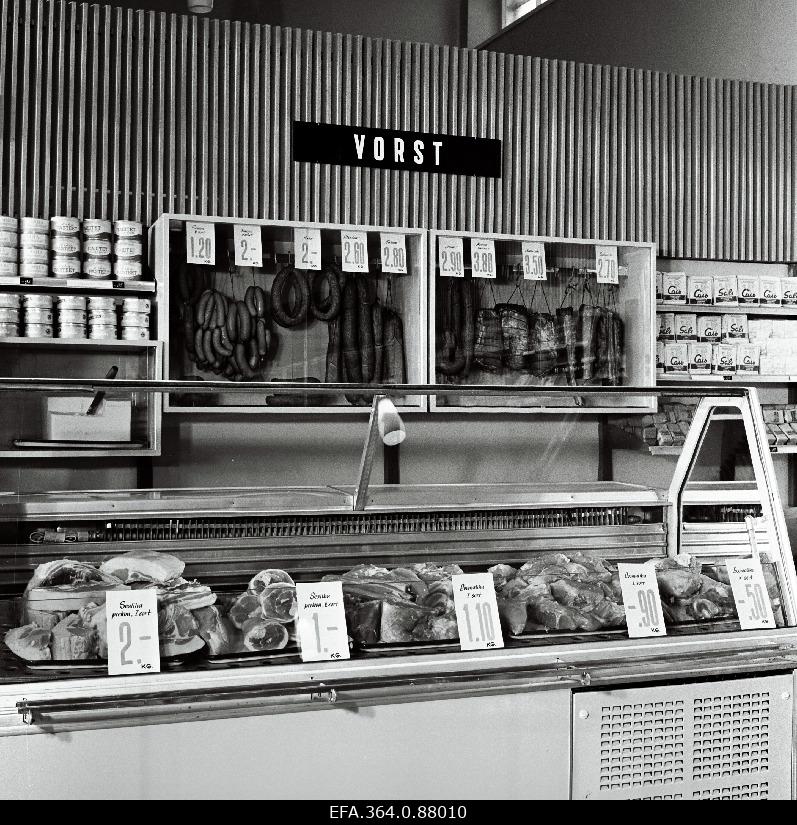 Võhma Tarbijate Kooperatiivi Suure-Jaani toidukaupade kaupluse sisevaade. Viljandi rajoon 01.1967 Paide Rajooni Tarbijate Kooperatiivi kaupluse "Pärnu" liha- ja lihasaaduste müügilett. Paide 01.1963 Väike-Maarja kolhoosi müügipunkti uued hinnad pärast 1990 hinnatõusu (konservidel on antud kilohinnad, mitte 250g konservikarpide hinnad)
