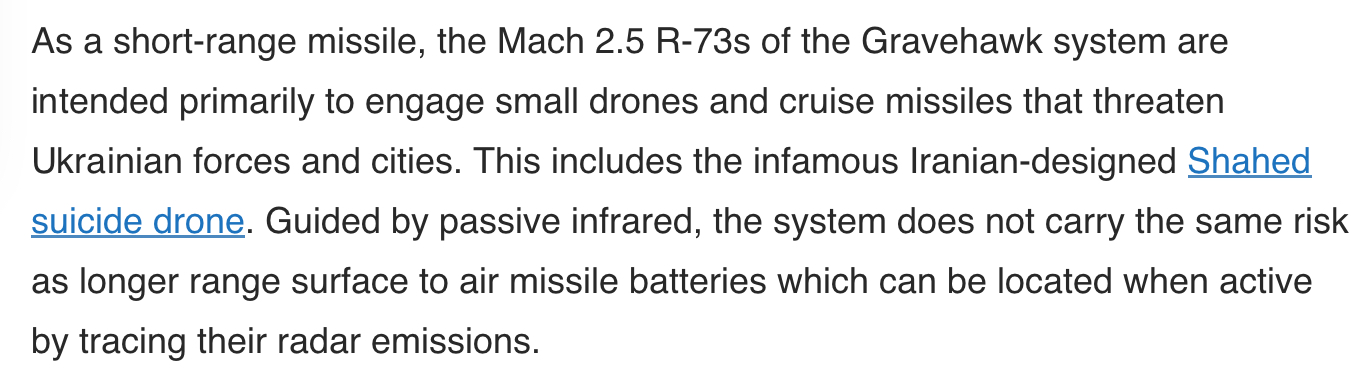 Sovjettide R-73 rakett oli 1990ndatel hirmus relv, milletaolist ameeriklastel ei olnud. Sellega üritati tasa teha oma mahajäämust keskmaarakettides, kaugus 30 km Sidewinderi toonase 18 km vastu. Hiljem suurendati 40 km-ni. IR tundlikkus suurtel kaugustel saavutati sedasi, et IR "silm" oli kitsa vaateväljaga ja seda sai siis erinevate sensorite abiga täpselt suunata, muuhulgas piloodi pea pööramisega (rakett oli suuteline lukustuma 45 kraadi lennuki pikiteljest, Sidewinder oli toona 23 kraadi). Sellele reaalne vastus tekkis alles AIM-9X näol.vilhelm kirjutas: ↑13 Veebr, 2025 9:12 Britid valmis saanud ja esitlenud spetsiaalselt Ukraina jaoks välja töötatud õhutõrjesüsteemi Gravehawk.