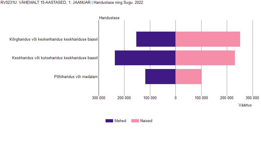 Juba sai mainitud naiste haridustaseme ja sündivuse seost. Haridustasemega kaasneb veel üks aspekt, nimelt on Eestis kõrgelt haritud naisi oluliselt rohkem kui mehi.