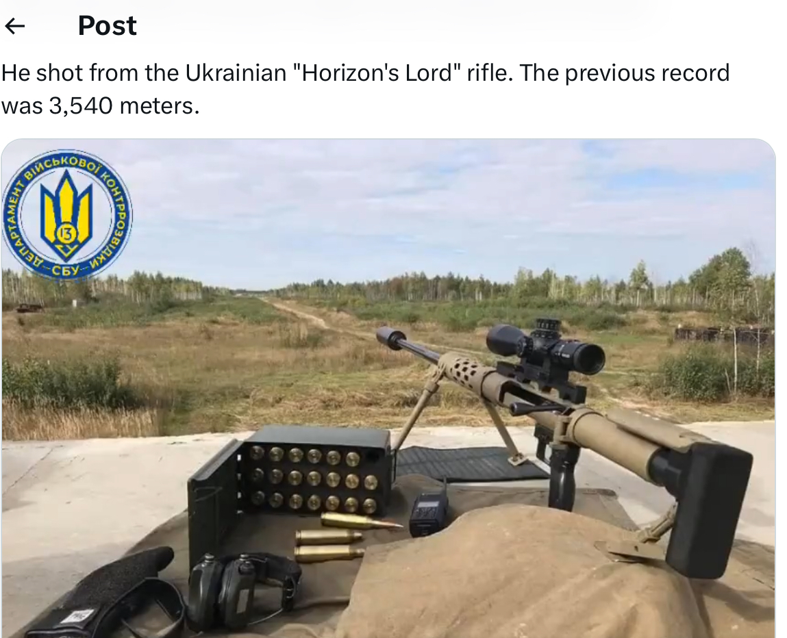 Väga hea intervjuu ja vene keele oskajatel kindlasti tasub mõttega vaadata. Oluline on aru saada, et venelane ka ei maga ja pidevalt analüüsib oma õnnestumisi ja eriti läbikukkumisi ning õpib nendest. Relv ja sihikud, mis pildil näha, on kindlasti hea kvaliteediga. Tagaplaanil on näha padrunite laadimise komplekt. Intervjuust ei selgu, miks nad ise padruneid laevad, ma oletan, et kvaliteetmoona saadavus on halb, sest mõistlik oleks sõja ajal mitte raisata aega padrunite timmimise peale. Video sissejuhatuses nähtavad oranzid karbid on kuuli kiiruse mõõtmise radarid. Nii saab testida konkreetse laskemoona lennukiiruse konkreetsest relvast ja teha võimalikult täpse ballistiliste paranduste tabel.