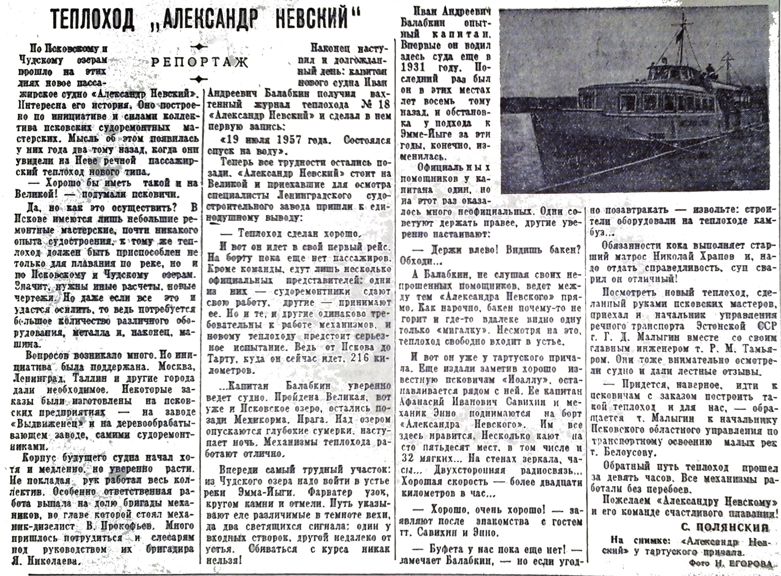 "Pravda" Jäädvustuse daatum pole teada. Pakuks 60-ndaid. Laev ehitatud 1955.a. Kaunases ja see eriliselt madalalt vees istuv variant (nats aeglasem kui tavaline tüüpalus) Saabus otse Narva. Viimane hooaeg 1974.