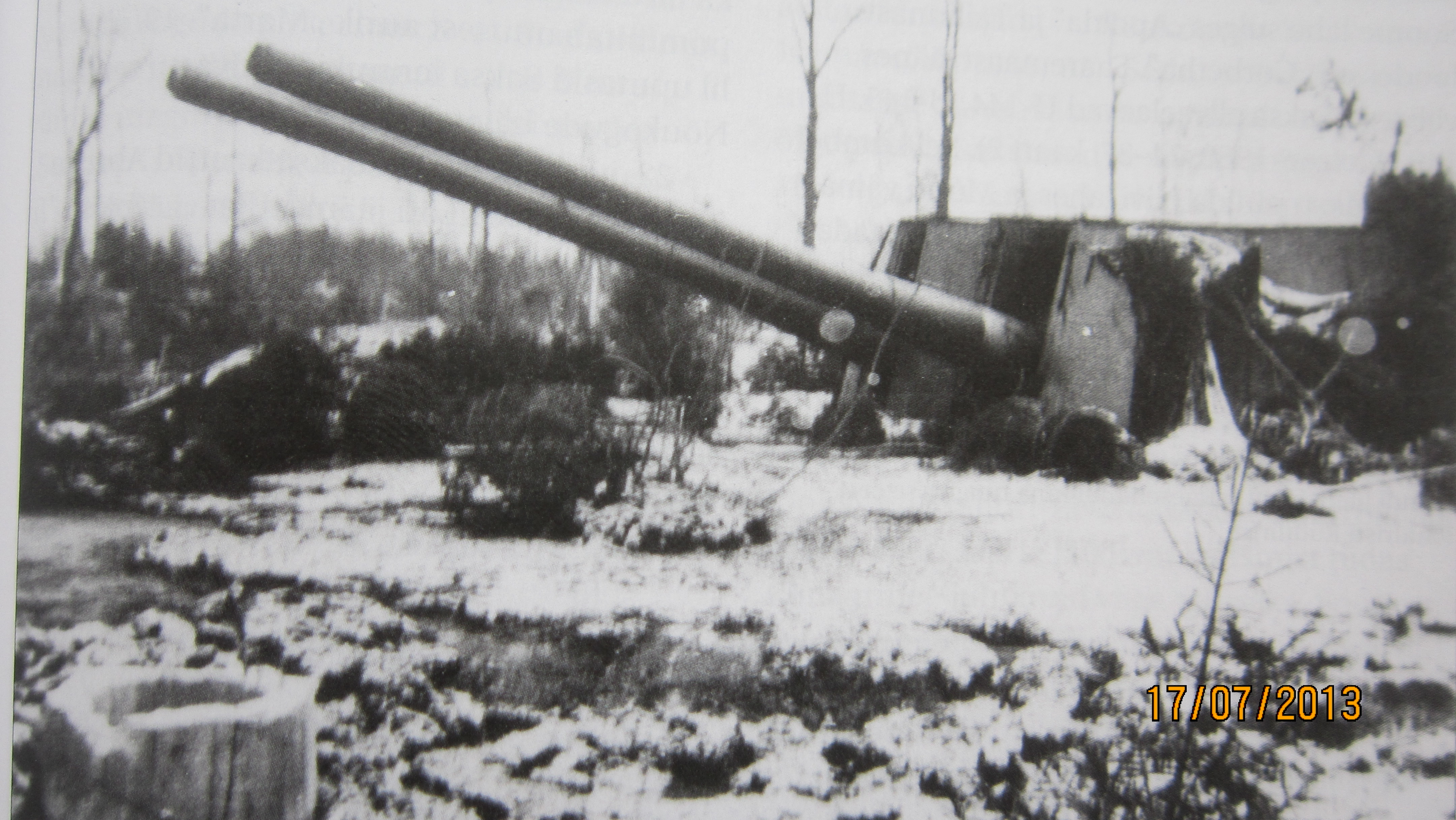 Kuna siin on need teemad ja meeste jutud juba nii segi läinud, siis panen ühest Ninase 180mm purustatud kahurist ka ühe pildi siia. Kõige parem tekst asja juures oli see, et Saksa luurelennukid avastasid Ninase patarei selle tõttu, et venkud ei ole jõudnud kaablikraavi kinni ajada :)