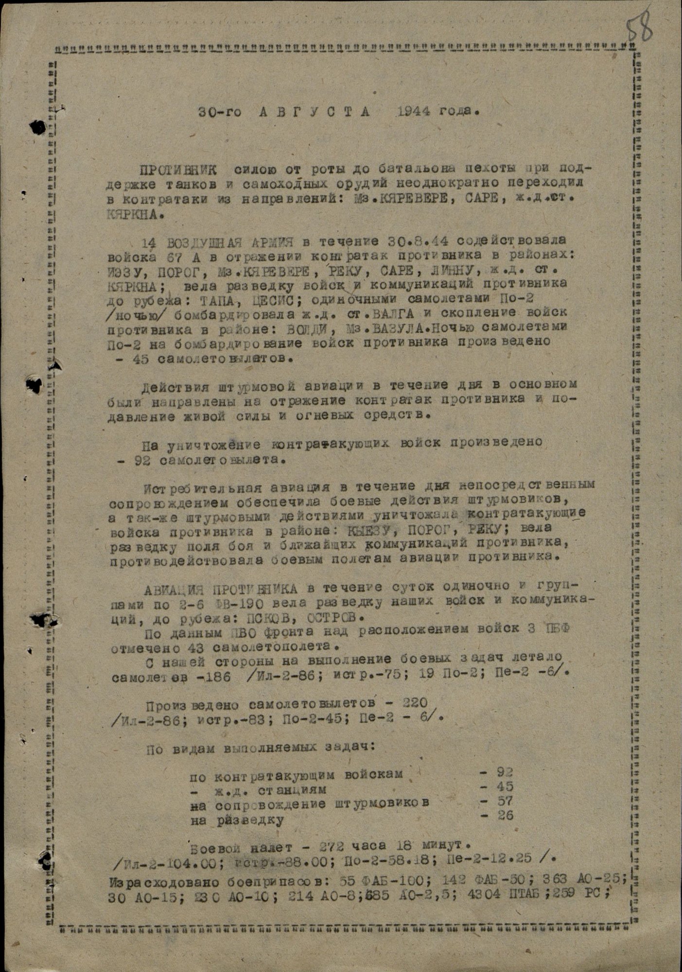 Välja lendas kaks kuuest gruppi, kokku 12 Il-2 kolme La-5 katte all. Rünnak toimus kell 20:05 - 20:13, kõrguselt 1100 kuni 200 meetrit. Lennult ei tulnud tagasi kaks Il-2, mõlemast grupist üks lennuk. Lisaks tegi vastase hävitajate poolt vigastatud kolmas lennuk hädamaandumise, mille käigus purunes. Seda millegipärast kaotuseks ei loetud.