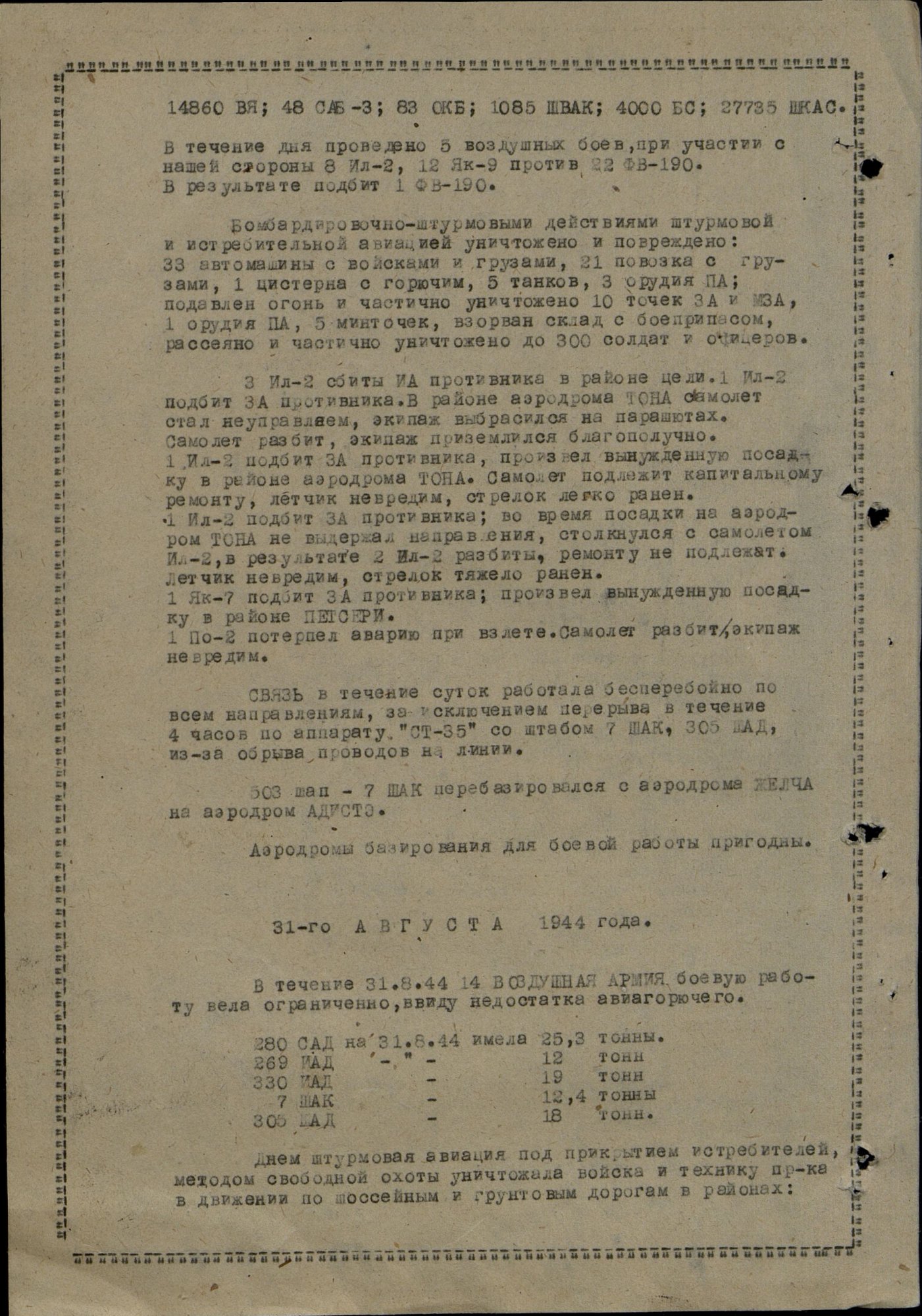 14. õhuarmee sõjapäevik ei ole ka kuigi detailne: