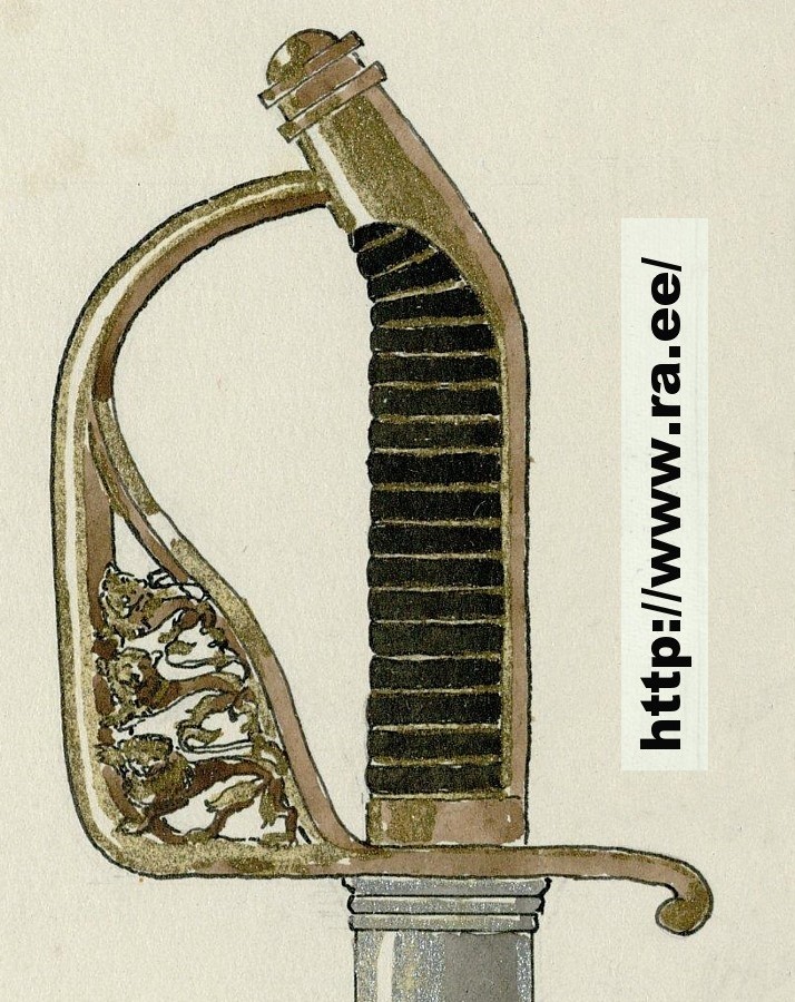 Tänud vastuse eest, kas sul ei juhtu olema mõnda pilti sellest 1881 a mudeli ohvitseri mõõgast, kus oleks näha kindlalt samasugune ülemine (rihma aasaga?) detail. Niipalu kui mina otsinud olen ei ole kahjuks sellist isendit leidnud, et oleks 100% võimalik öelda millelt need detailid pärinevad.