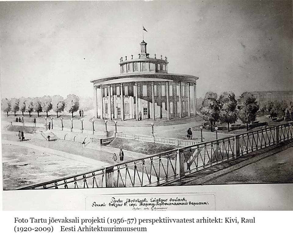 Mina nägin selle šedöövri kujutist 50-te II poole Edasi -lehti lapates. Pikk artikkel ja puha. Tõsi, hoone pilt oli vist teise nurga all? Ja meenus, et kas selles (või mõnes tollest ajast pärit teises) leheloos oli veel juttu, et Moskvitš- tüüpi jõetramme tuuakse Tartusse kokku viis tükki. „Koidula“ oli igal juhul hiljuti saabunud. Minu mäletamist mööda oli loos kirjutatud, et sinna tuleb "kohakaasluse alusel" ka maaliinide bussijaam.