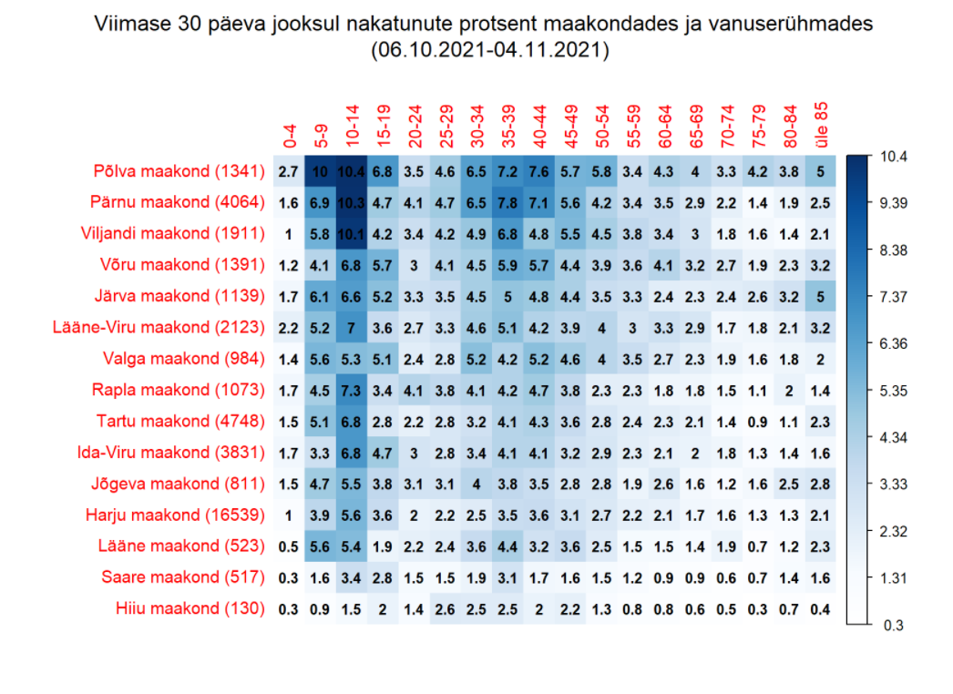 Ma siin eile? panin 7p lõikes vanusegrupid, kes on pos PCR saanud - seal võiks tekkida küsimus, et see tuli koolist jagatud testidest, kes sai neg, läks ka PCR-i tegema, aga lisan 30p oma. Lapsed ja selles eas lapsi omavad vanemad/vanavanemad domineerivad.