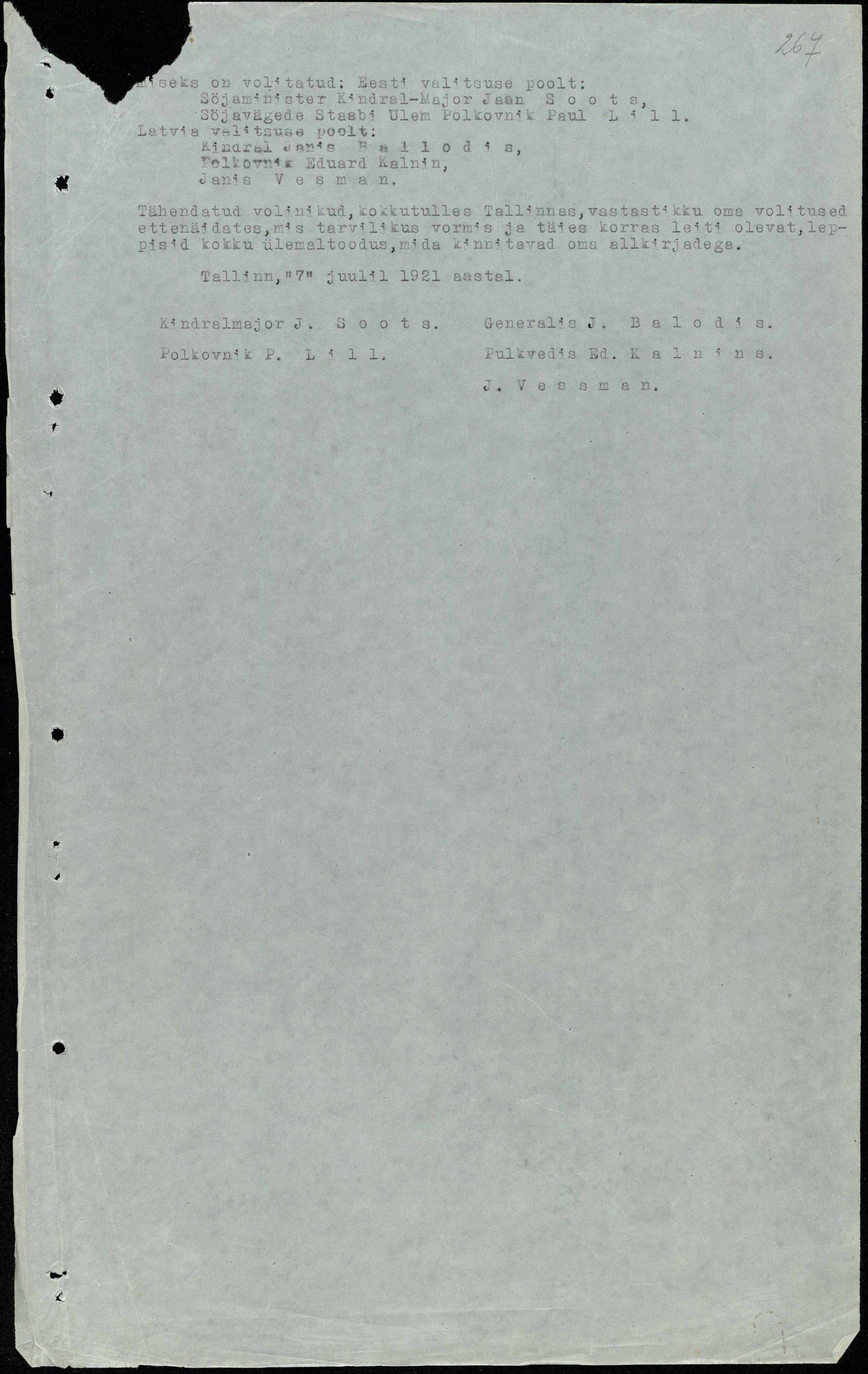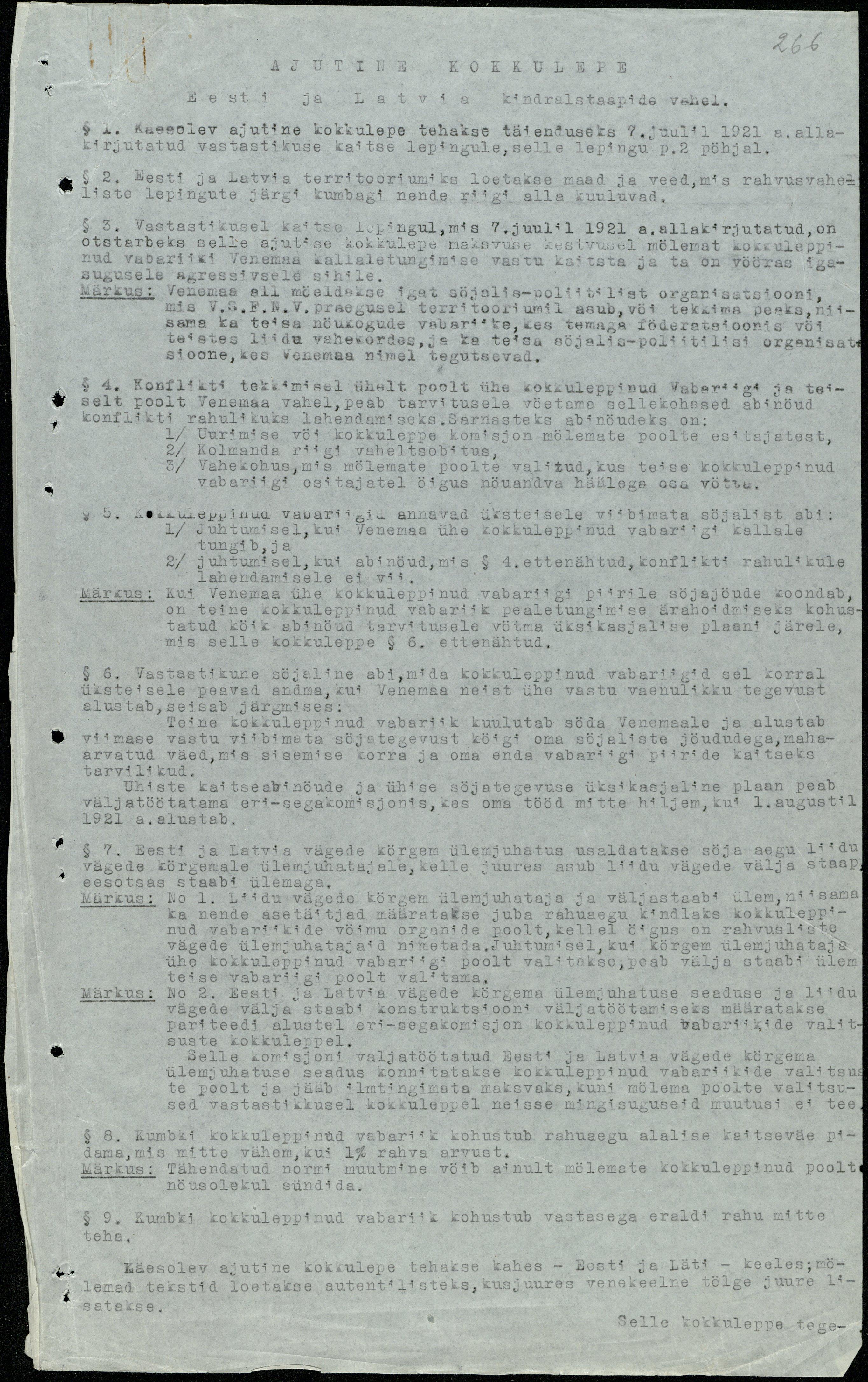 Eestil oli oma lõunanaabri Lätiga ühised riigikaitselised huvid ning sellel eesmärgil sõlmiti 1923. aastal Eesti-Läti kaitsealase koostöö leping. Selle lepingu eesmärk oli ära toodud lepingu sissejuhatavas osas: […] et alal hoida oma rahvuslikku suveräniteeti ja sõltumatust, mis kätte võidetud nii paljude ohvrite hinnaga, aga samuti oma territooriumi puutumatust.