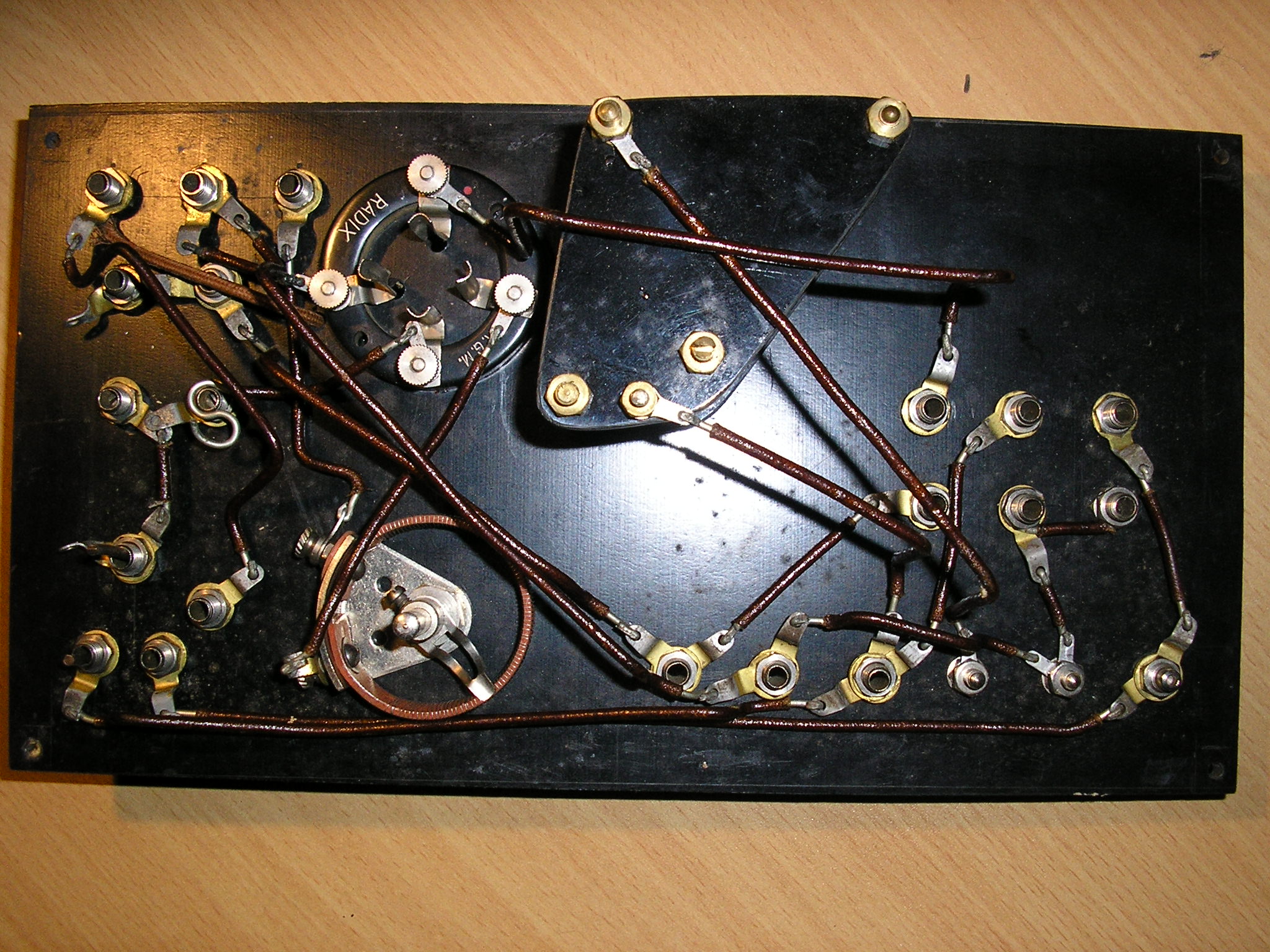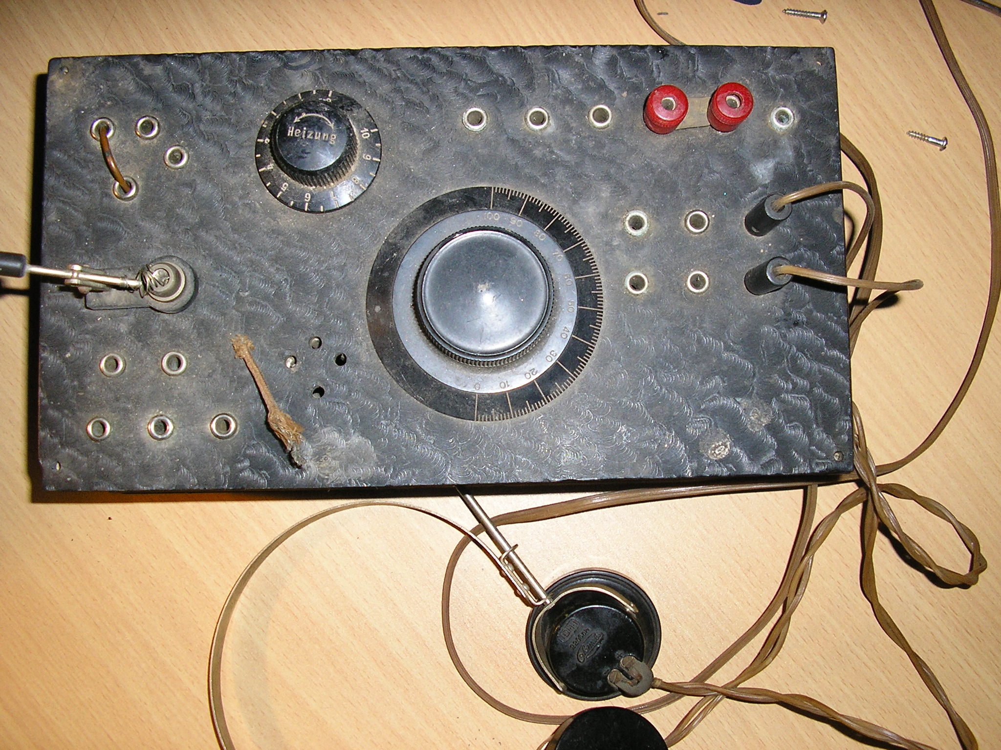 Aga kas pole siin detektorvastuvõtjale ühelambiline võimendi juurde aretatud? Takistite ja kondensaatorite puudumine räägib küll sellele vastu, aga mine tea. Võnkering lihtsalt võrega ühendatud. Reostaadiga reguleeriti siis jah küttevoolu. Kontroll käis vast kütteniidi hõõgumise heleduse järgi.