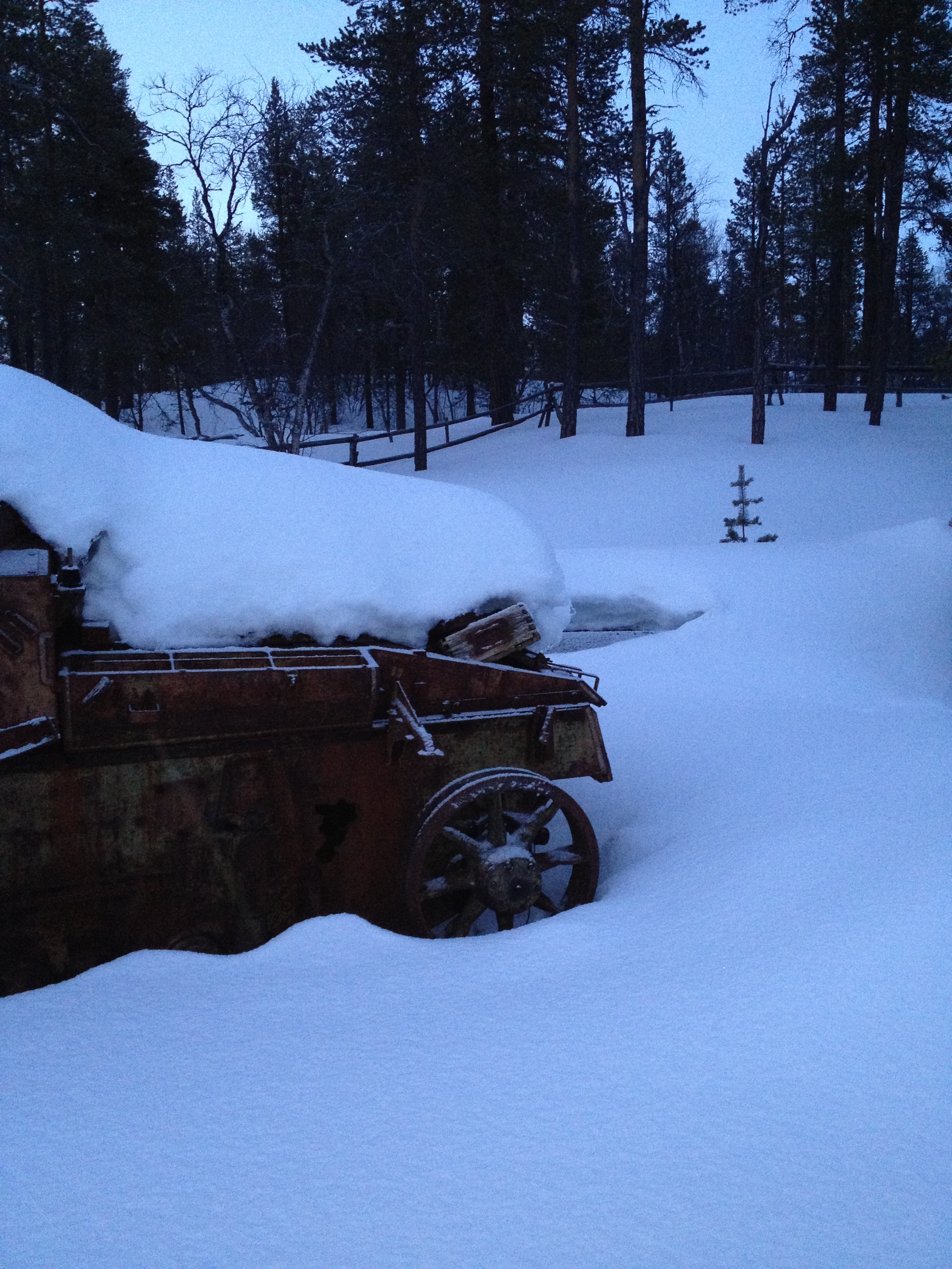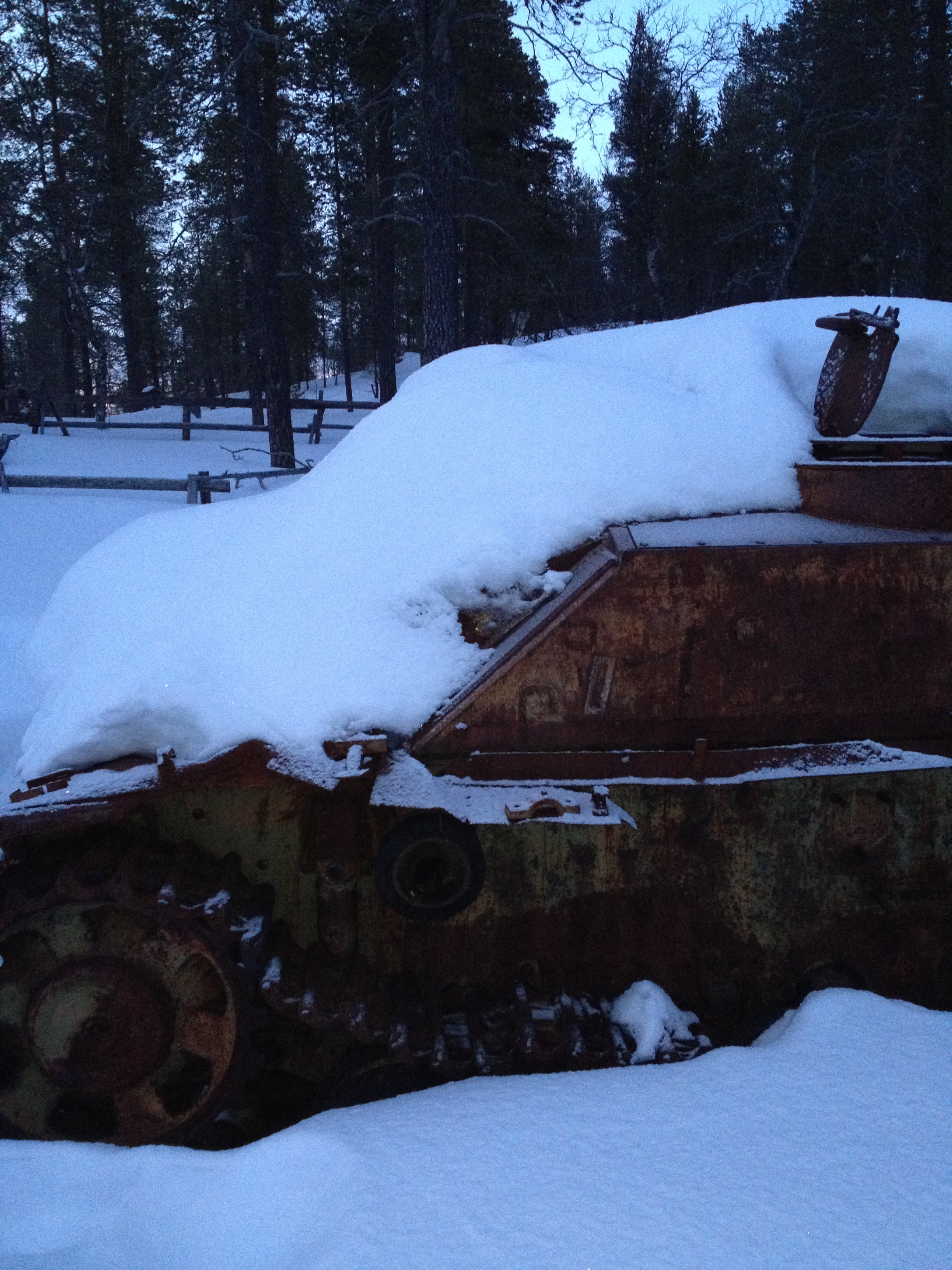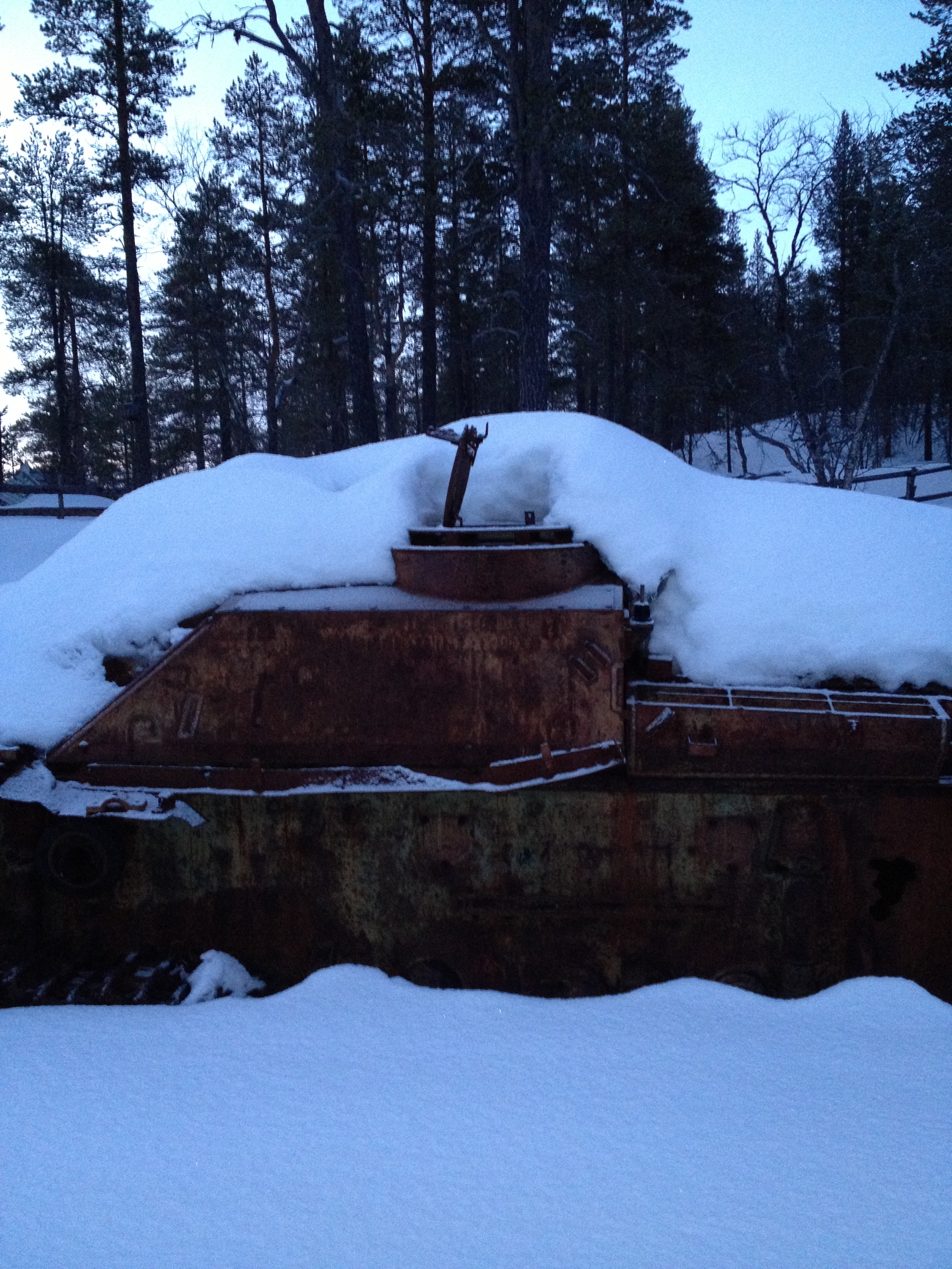 proovisimegi v6ttmega lahti saada aga nii roostes ja kinni, et lahti me igatahes ei saanudki, selle vaese stugi sees oli veel suht heas seisus mootorgi alles, mis esialgse vaatamise kohapealt ei olnud pihta saanud, nyyd igatahes asi selge miks see stug seal seisis ja miks nii räbalaks lastud oli, olime mingi soome vanal laske polügonil, soomlased kasutasid peale s6da neid sihtmärkidena.