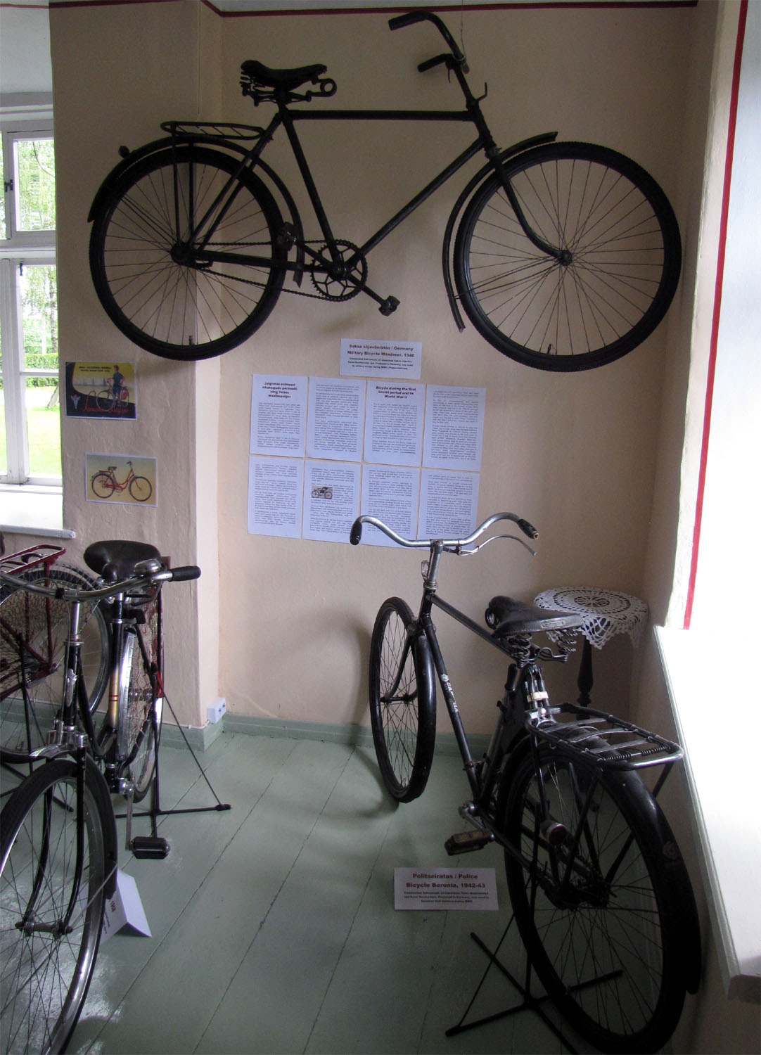 Sõjatehnikasse puutub see ekspositsioon sedavõrd, et praegu on meil muude rataste kõrval eksponeeritud ka originaalseisus ja originaalvärvis Saksa sõjaväejalgratas Wanderer (1940.a., fotol ülal), mis jäi Teise Ilmasõja ajal Eestisse maha. Samuti on meil eksponeeritud Teise Ilmasõja aegne Saksa politsei-jalgratas Baronia, samuti originaalvärvis ja originaalkomplektsuses, etteossa on pressitud sisse tekst "Pol. Dienstrad" (fotol all). See ratas on olnud saksa ajal Eesti Omakaitse kasutuses, kelle soovil neid väikepartiidena siia ka osalt toodi.