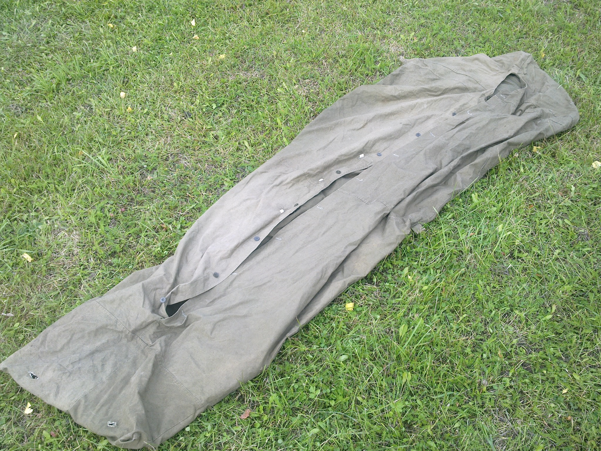 Presendist magamiskoti kate. Lastud õmmelda vene presendist usa katte lõike järgi. Peab tuult, mõõdukat vihma ja on hingav. Katte kasutamine magamiskoti ümber annab kuni poolevõrra kotile soojapidavust juurde, ei lase tuulel soojust ära puhuda.