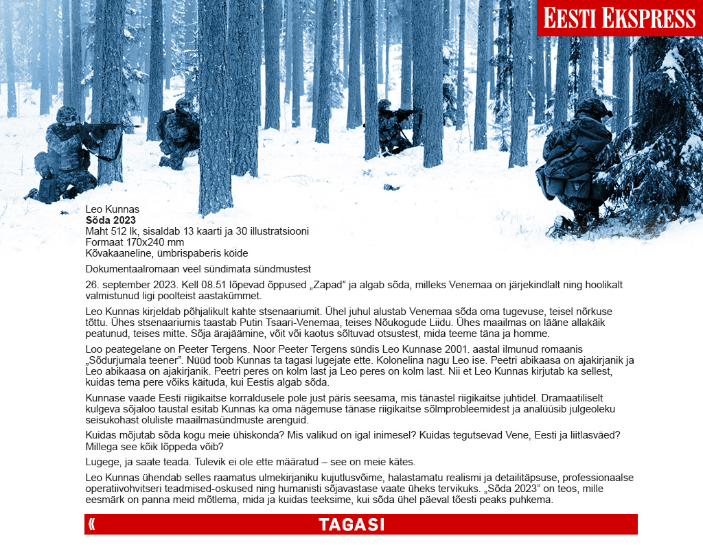 Eesti Ekspress esitleb Leo Kunnase uut ja haaravat dokumentaalromaani „Sõda 2023“. Ekspressi endine peatoimetaja Aavo Kokk selgitab, miks on see parim jõulukink kõigile, keda huvitab Eesti käekäik.