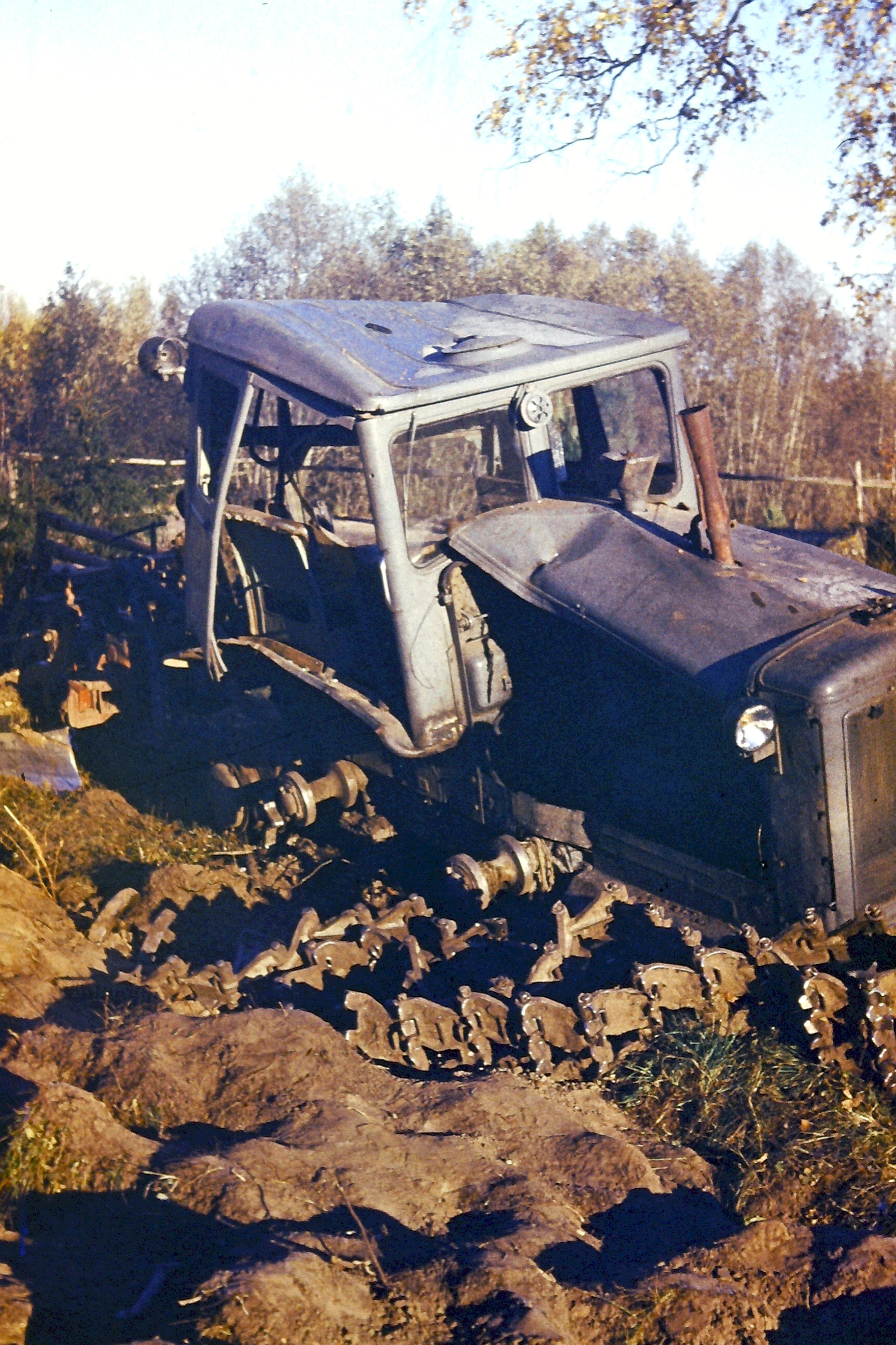 Kunagi lapsepõlves nägin vanaema juures albumis pilti lõhkekeha otsa sõitnud linttraktorist.Nüüd palju aastaid hiljem sai see palutud tädil sisse skännida. Tegu on 70-date lõpul Jõgevamaal künnitööde käigus õhku lennanud T-74 traktoriga. Juht pääses õnneks eluga, kuigi sai tugevalt põrutada.Olla päästnud istme alla laotud ca. viis rida adrapeitleid.