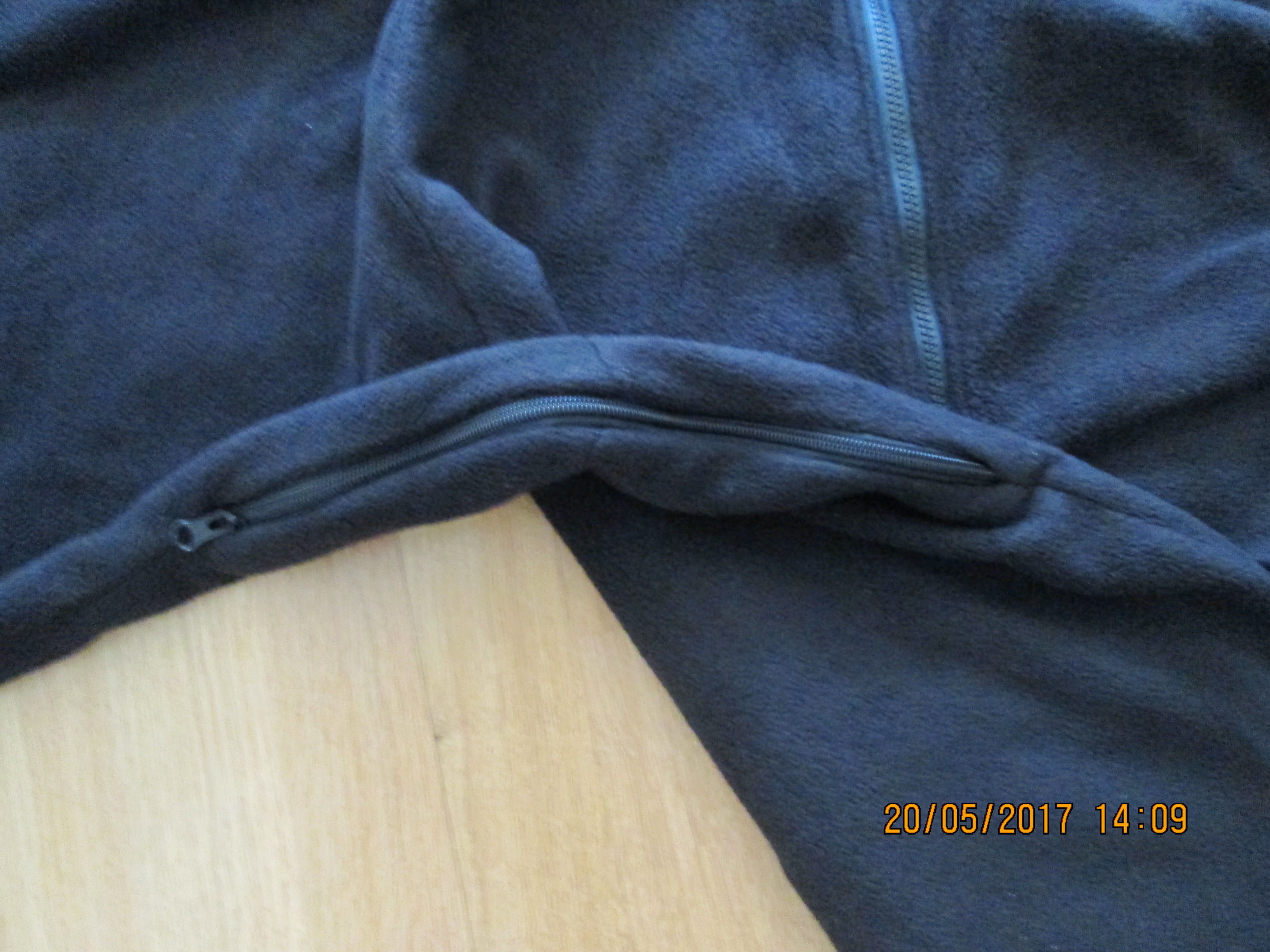 Meeste fliis. Kaenlaalt õhutusavadega. Üldpikkus 72cm. Mõõdetud seljapealt kraeõmblusest alla äärde