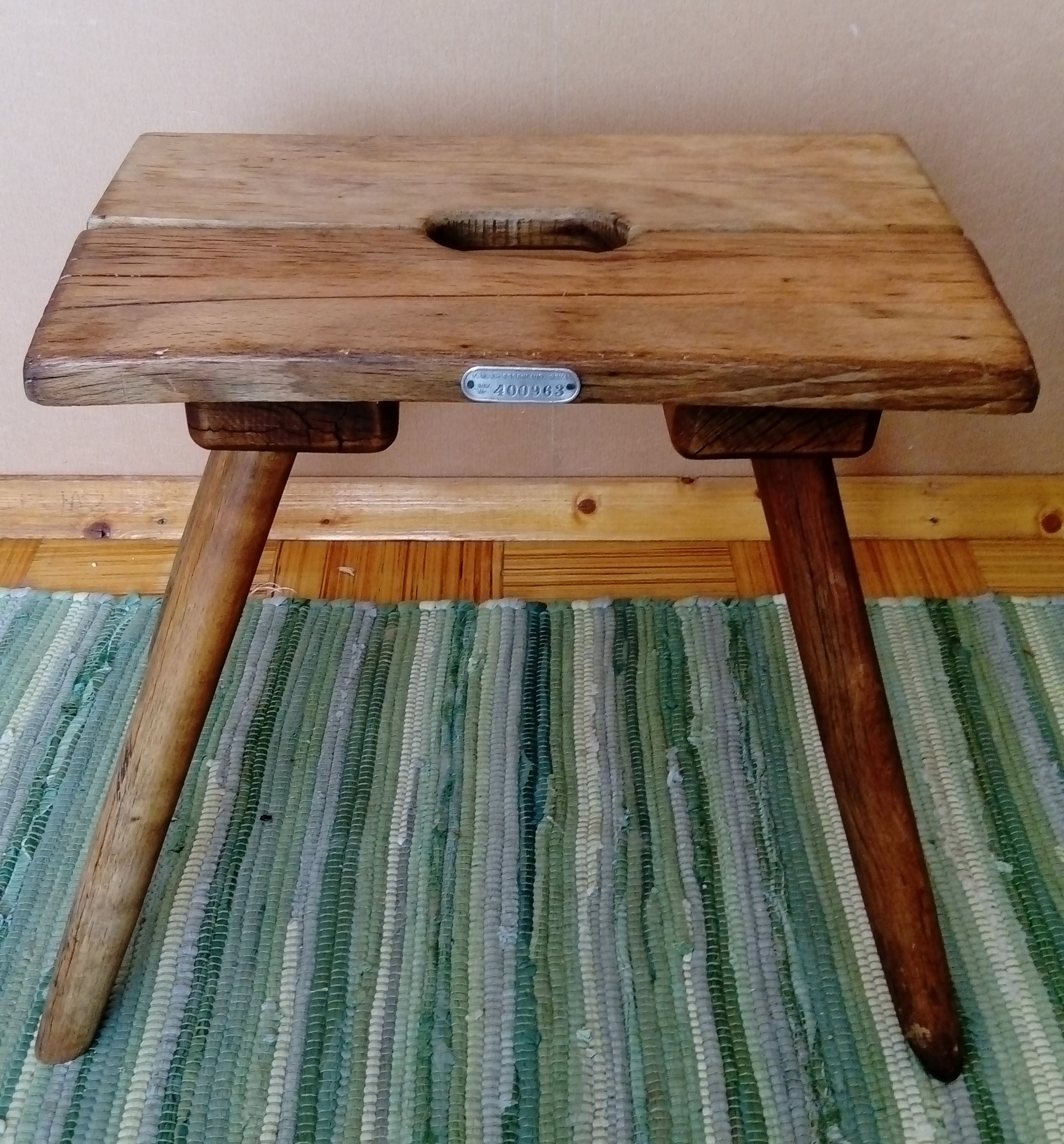 Tere. Minu kätte jõudis enne utiliseerimist üks nelja jalaga pink või taburet, kuidas kellelegi. Tähelepanu äratas küljepeal olev plaat, kas kellelgi võiks olla mõtteid pingi päritolu kohta.