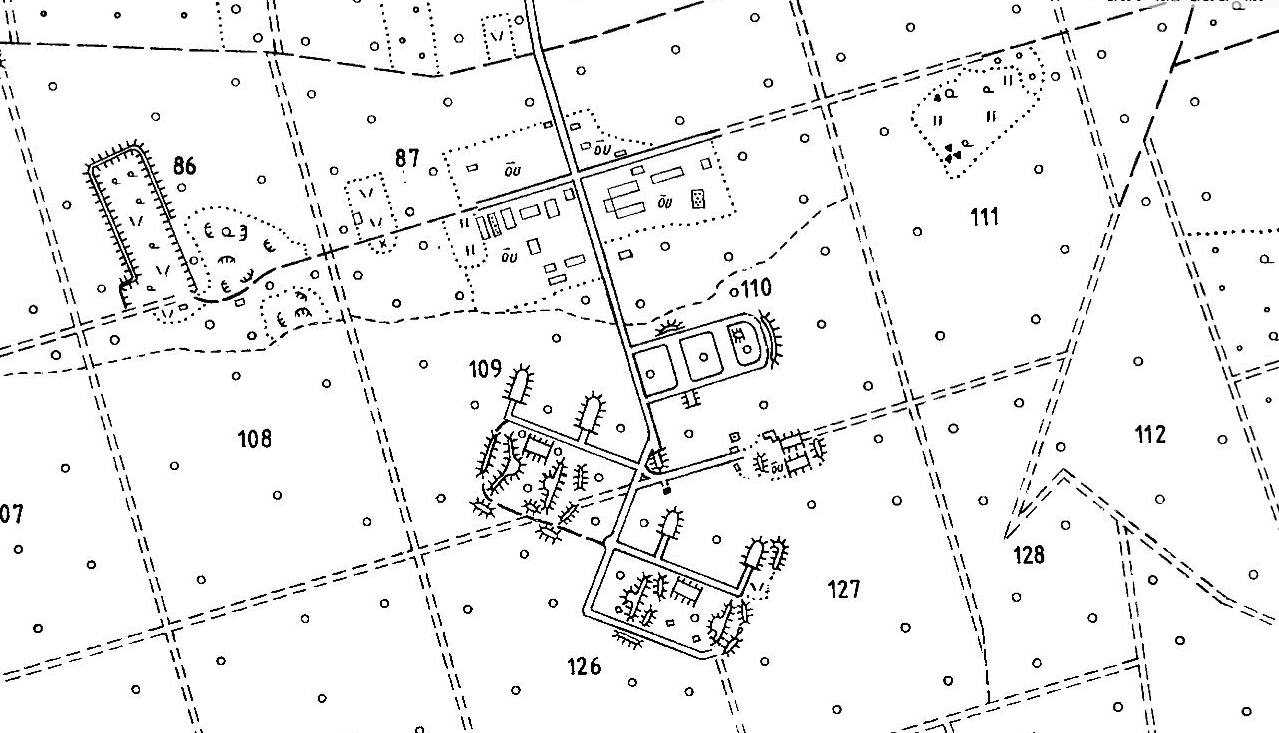 1946a NL topo 1 : 10 000. Selle koha peal masti tingmärk puudub, kuid on näidatud okastraataiaga ümbritsetud väike nelinurkne ala kahe hoonega.