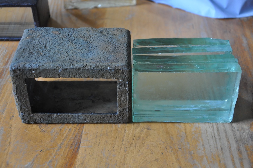 Käisin garaazhis seda klaasitükki vaatamas ja mälu oli alt vedanud. Tükk pole nurgast, vaid servast pärit, ehk kolmest küljest murdunud ja mõõtmed 9x9 cm. Paksus õige 26 mm.