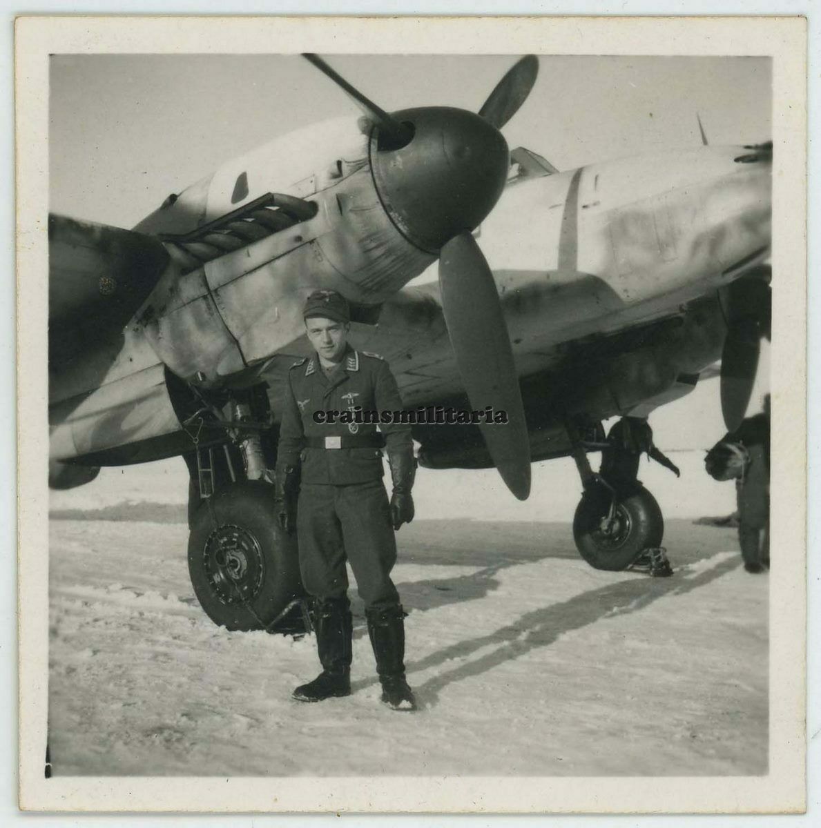 Oktober 1942 zum Ostfront mit der 4.(H)/33 und Anfang der Feindflüge als Aufklärer in Bf 110 fast nur ab Flugplatz Siwerskaja bei Leningrad, sonst auch ua Gotschina
