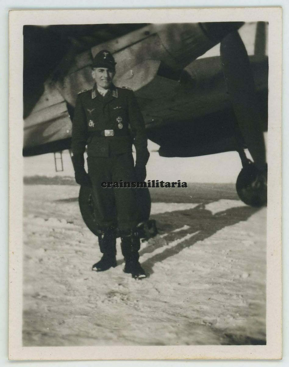 Er wurde ua ausgezeichnet mit dem EKI und Frontflugspange in Gold, und hat den Krieg vermutlich überlebt.