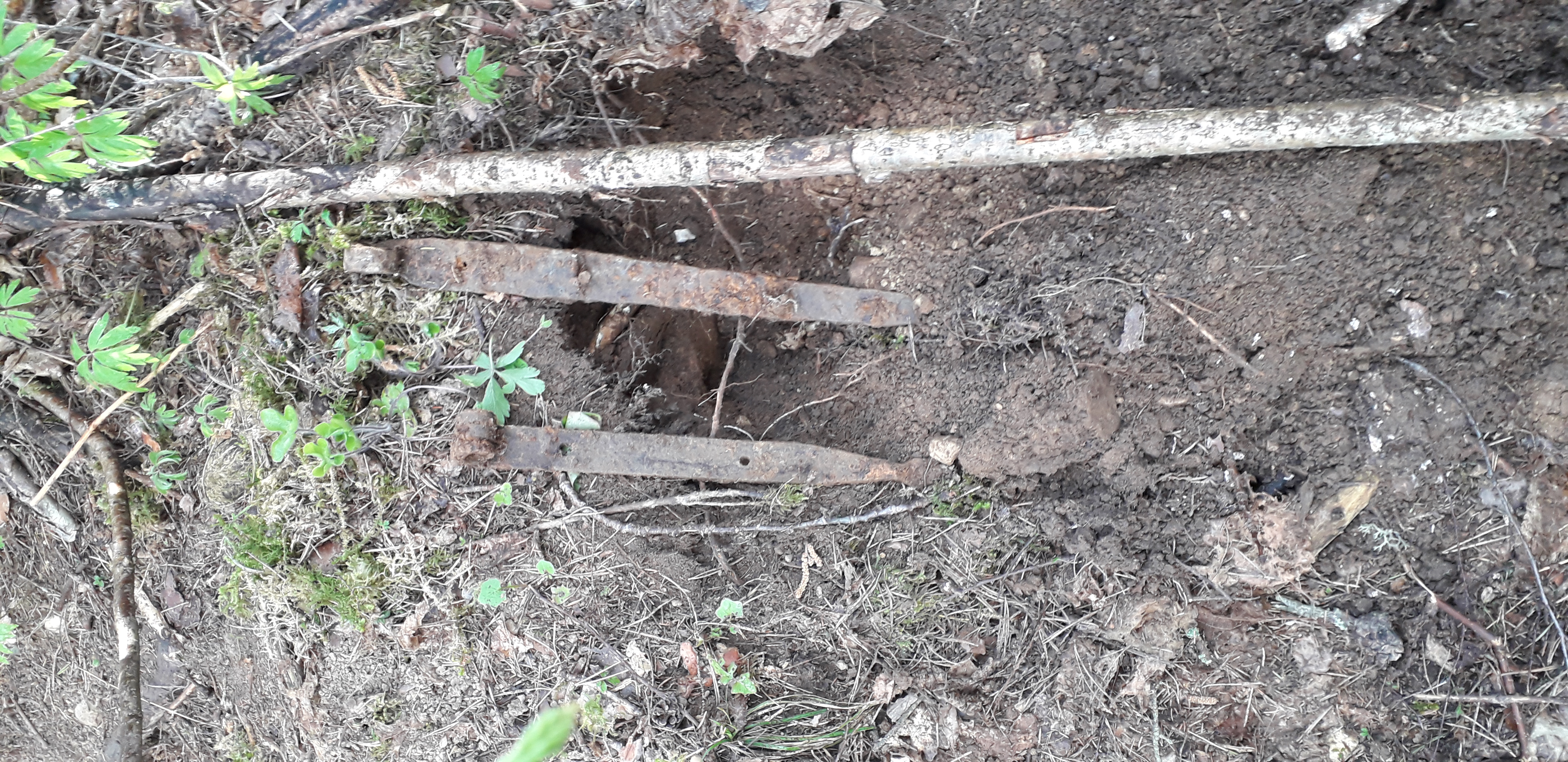 Maa alune on ja koht on lohkus, naelu ka oli. Veidi eemal kasvab tikripõõsas. Lähimad majad paar km kaugusel. Küla poolt tulles leidsin tikripõõsa ja veidi eemalt rattanumbri ja siis jõudnin lohuni kust tulid välja need hinged, ilmselt luugi küljes olnud, asetsesid a 30cm vahega.