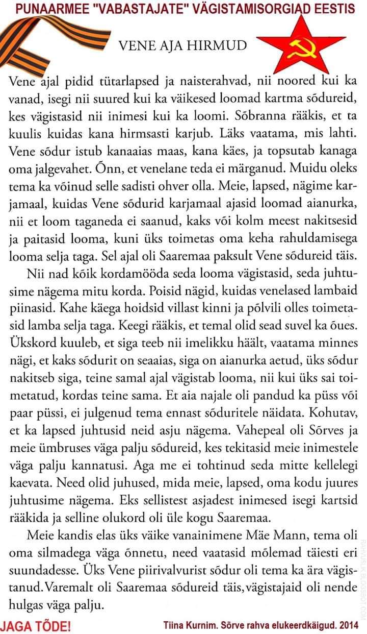Et jah :scratch: Ma muidu absoluutselt ei kahtle, et taolised loomade vägistamised punaarmeelaste poolt toimusid. Aga see konkreetne allikas on küll maru kahtlane :mrgreen:
