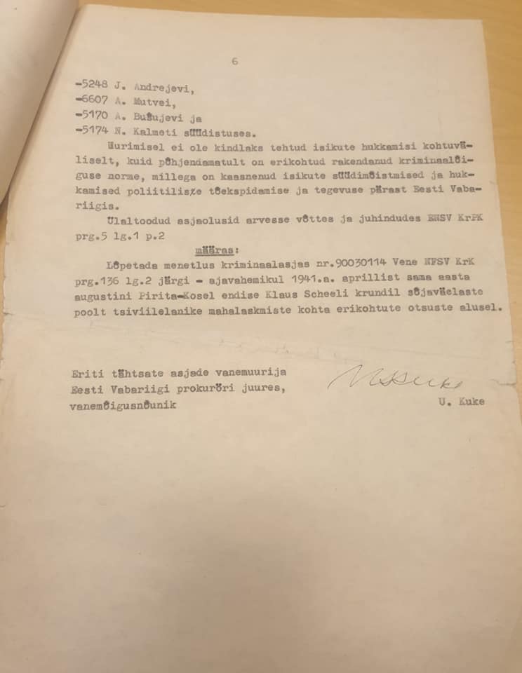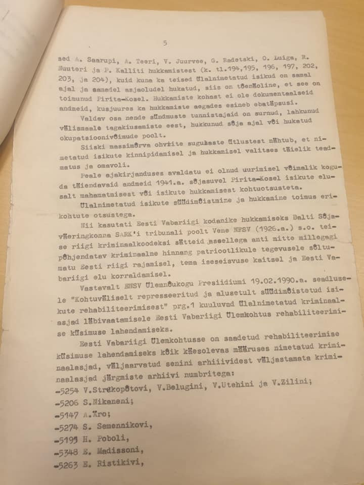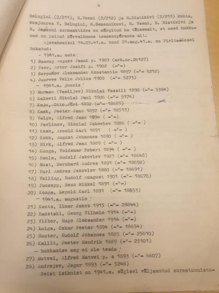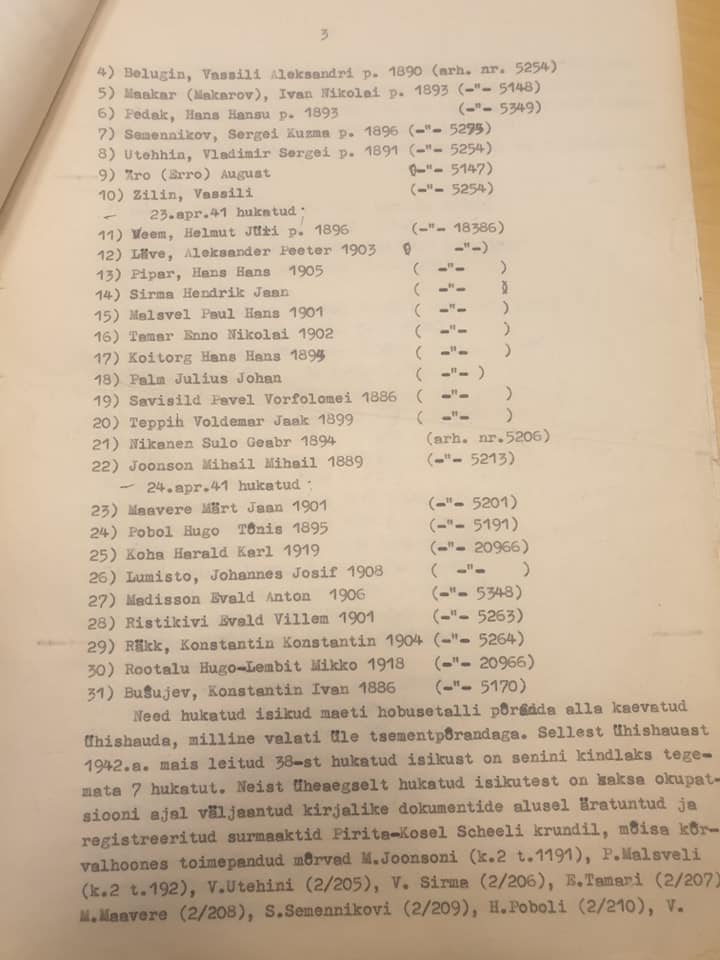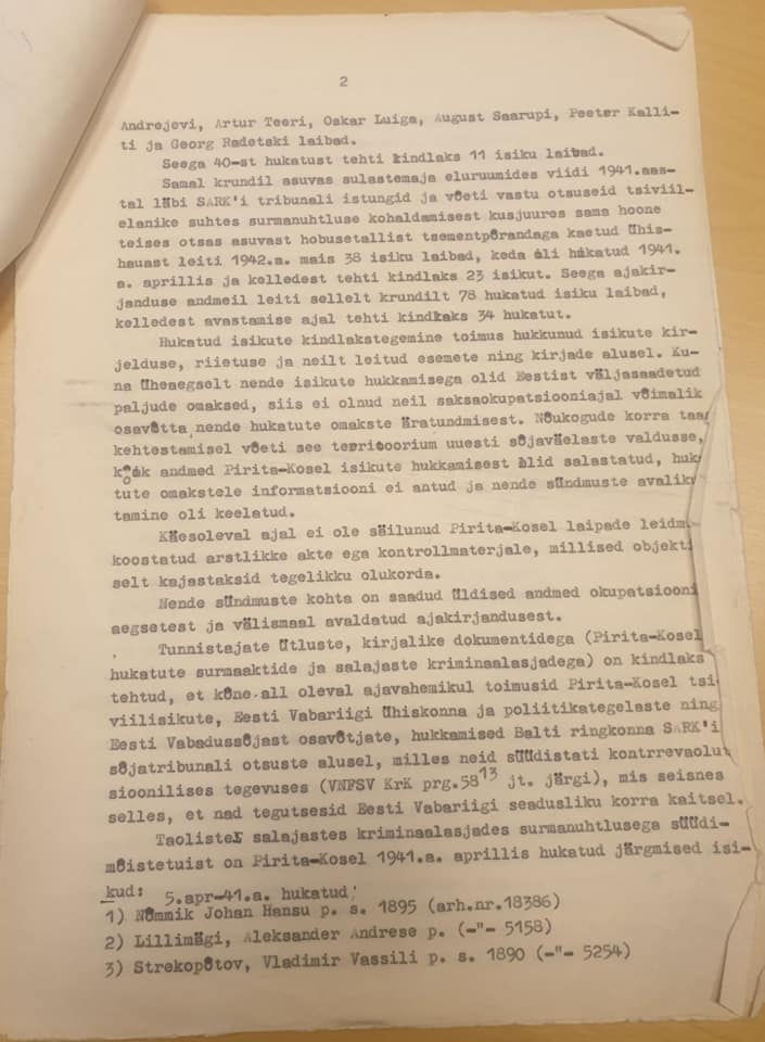 Pirita-Kosel 1941 aastal NKVD poolt hukatud inimeste kohta tehtud ekspertiisiakti teine osa