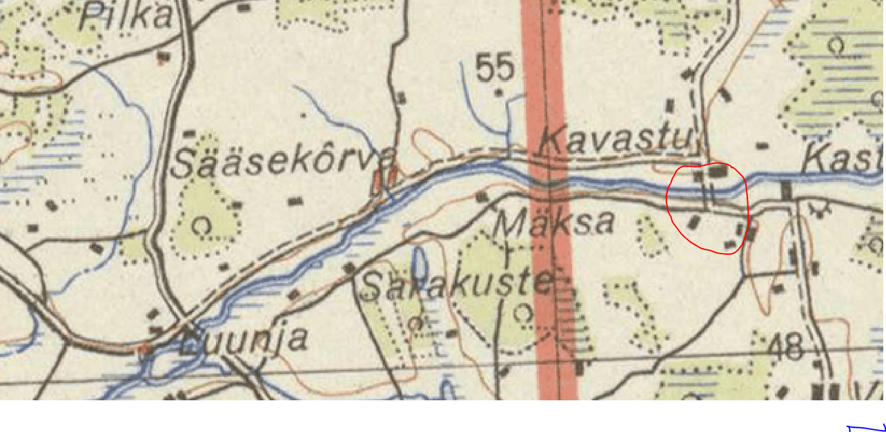 Aga jah, 1943 a kaardil (Heereskarte mõõtkavas 1:300 000), saadaval meie geoportaalis on nagu sild ära täheldatud)