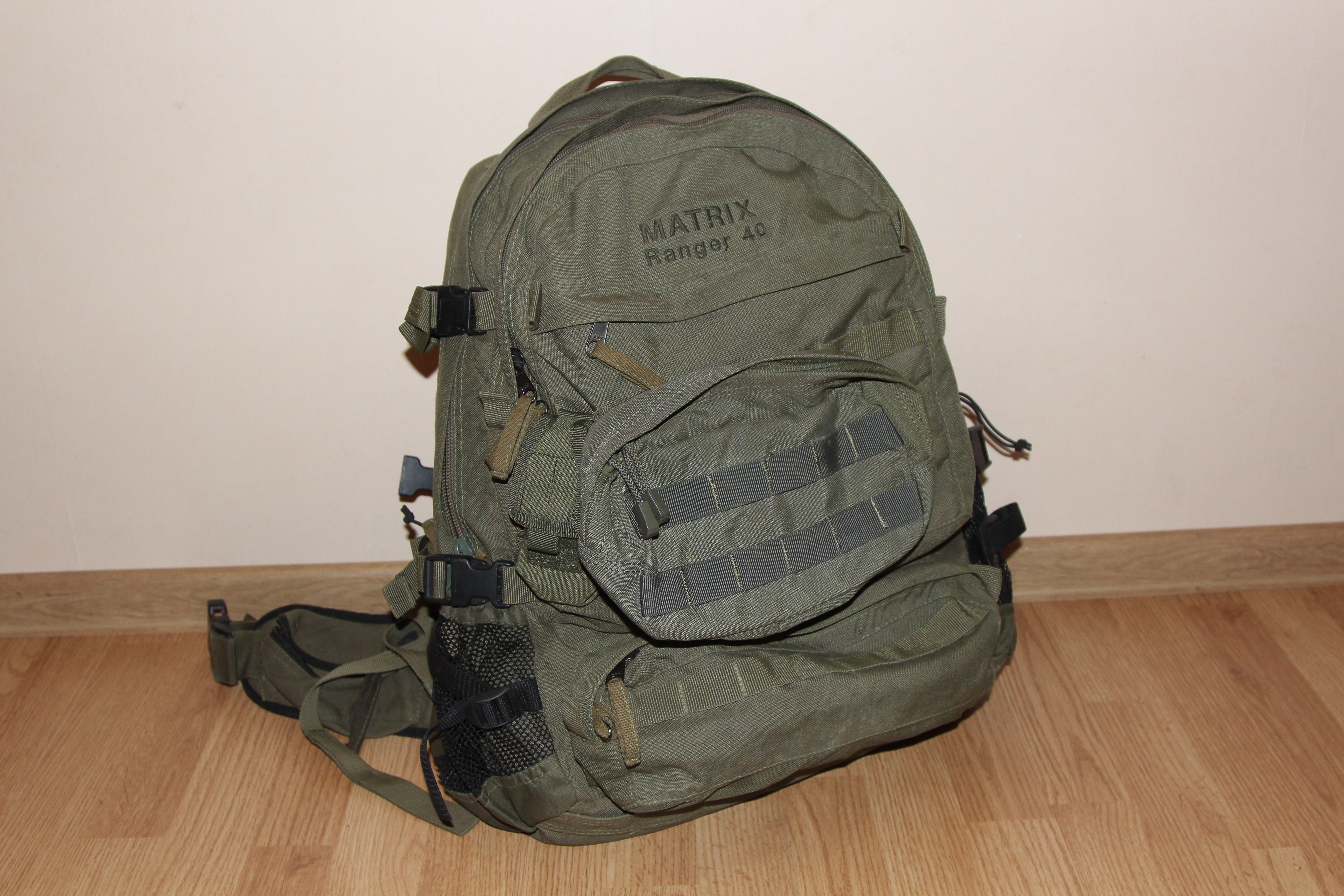 Müüki läheb seisma jäänud, seni paar-kolm korda aastas kasutatud, ülimugav patrull-kott Ranger 40, Matrix. 40-liitrine (tavapärane tänapäeva nn 3-päevast patrullikatele) kotil on suur põhitasku, all vihmariiete, kinnaste vms lisatasku ning üleval toidu ja admin tasku. Lisaks on vöörihmal väike tasku võtmete/telefoni hoidmiseks. Ise olen lisanud molle-kinnitusega admin-tasku, kus olen hoidnud väikest binoklit + tagavarakindaid + näksimist. Kogu kott + vutlarid on vahatatud (ja fööniga sisse sulatatud) üle paari aasta, nii et ekstra-veekindlus on tagatud.