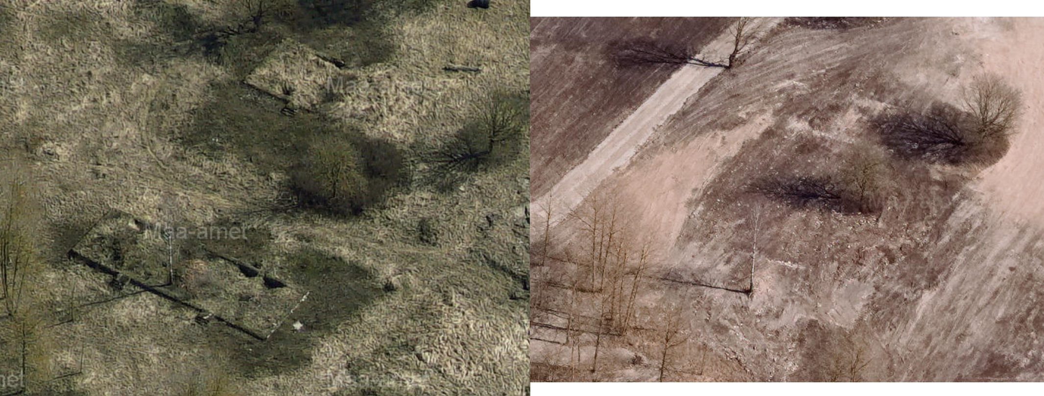 Nagu näha tänapäevaste fotode pealt, siis need "hästisäilinud" vundamendid millest ma rääkisin on vaid märg plekk murul. 2018 veel olid olemas. Panen siia võrdluse 2018 ja praeguse vahel. Ju siis otsustati et jäid tsiklitele ette.