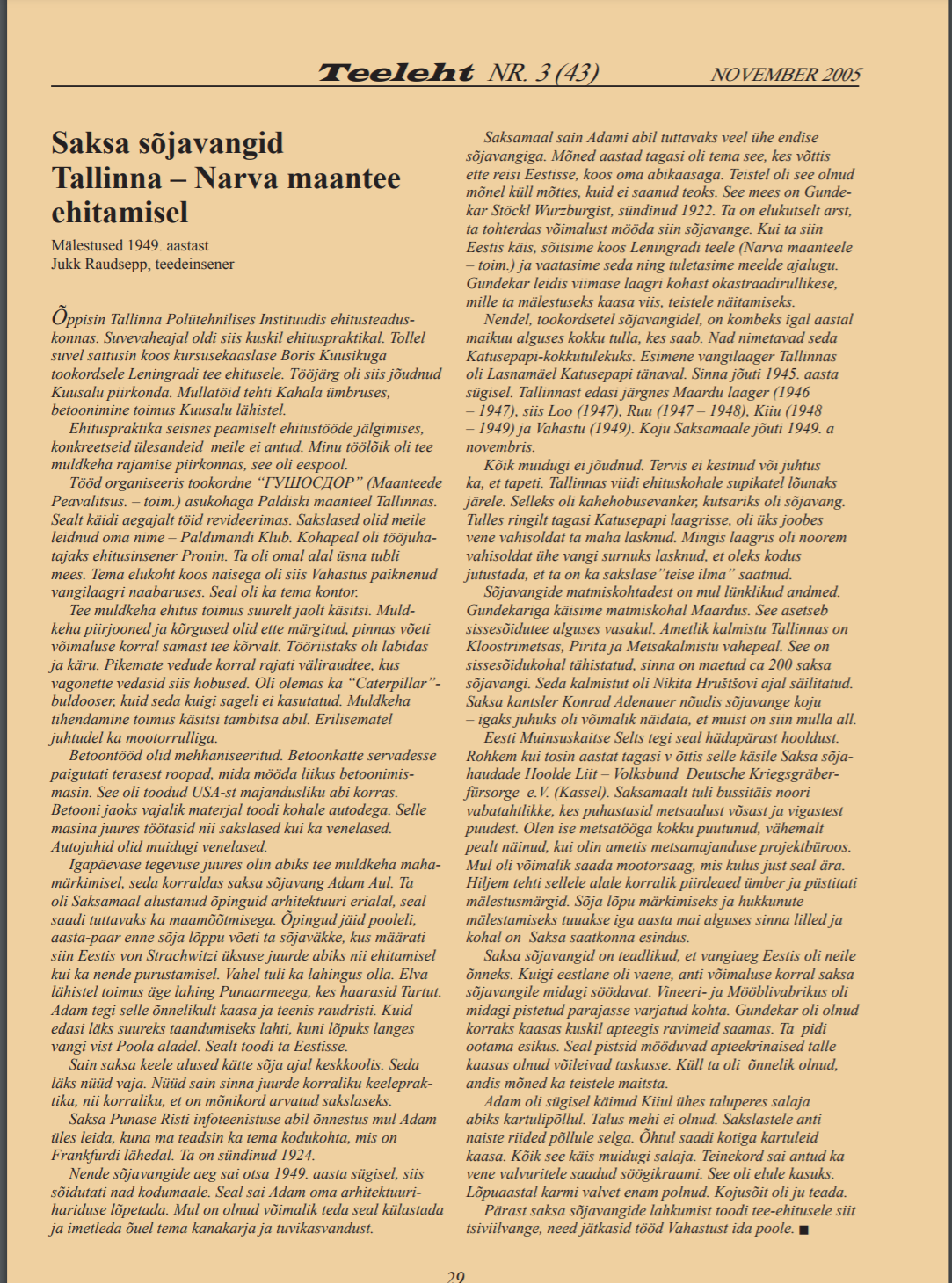 ERR arhiivis peab olema ühe vanaproua mälestused, kus ta väidab,et saksa sõjavangid olid iga laagris surnud kaaslase mälestuseks kirjutanud ta nime puuklotsile mis uputati ehitatava tee betooni sisse.