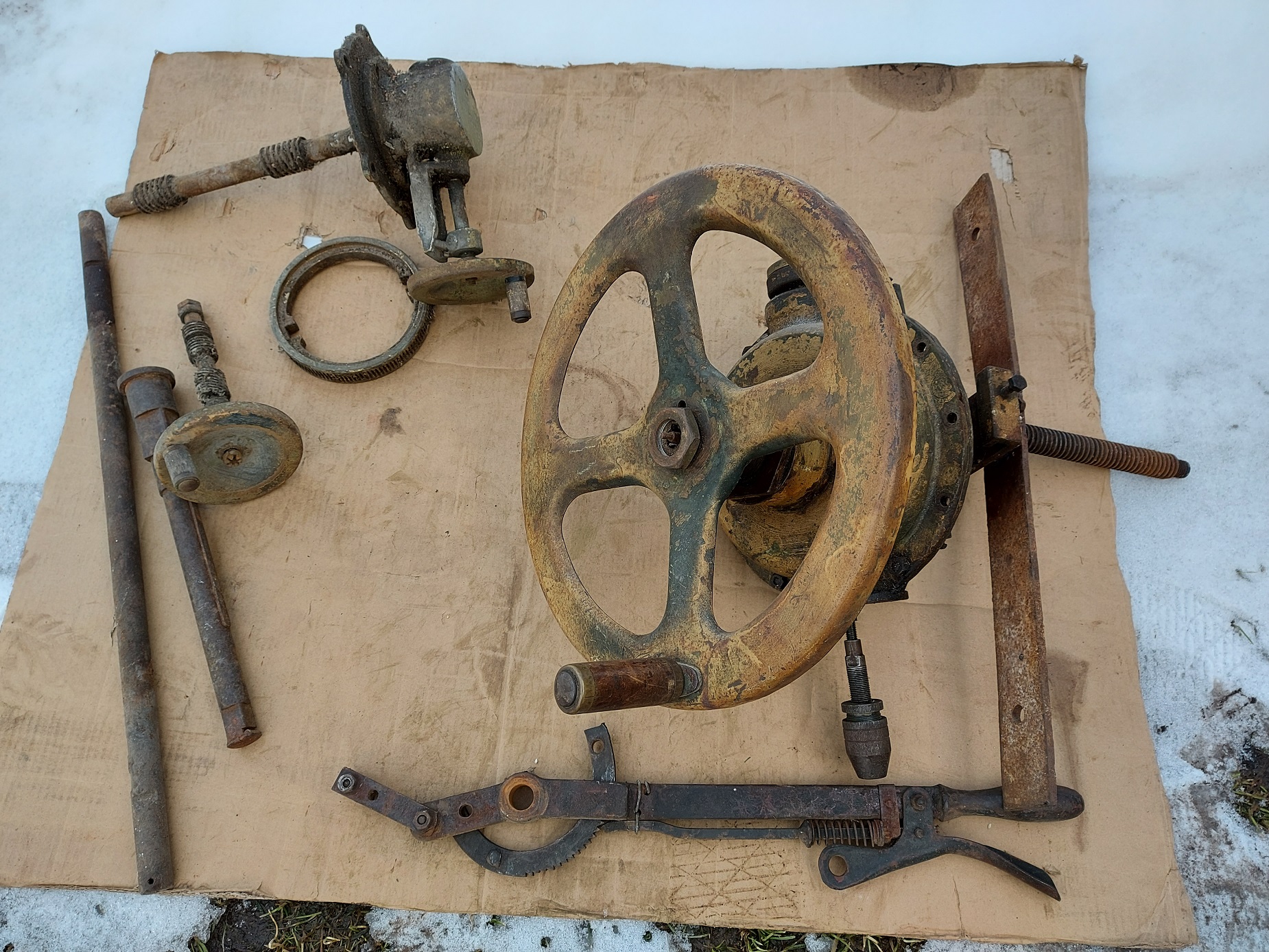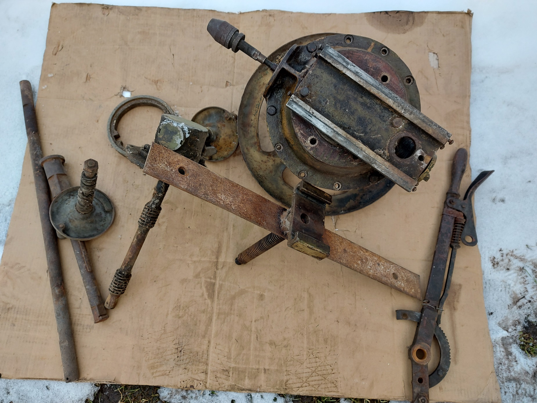 Keegi tark mees oli endale ehitanud käsipuuri...üles-alla liigutamine käis kangist(esimesel pildil all näha). Lisaks tuli kola seest veel mõned vändad välja mida võiks seostada ülalnimetatud riistapuuga? Samas majapidamises olid ka mõned Flaki kestad...