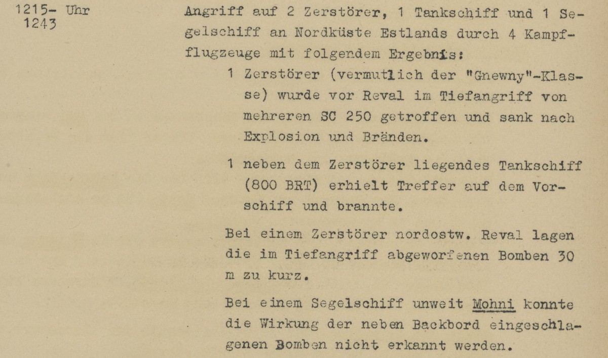 Luftbild einer Volltreffer der 'Besatzung Lukas' der KGr.806 auf russische Zerstörer im finnischen Meerbusen in der Hara-Bucht, Estland, August 1941 - dazu Zeitungsausschnitt über diese Ereignis!