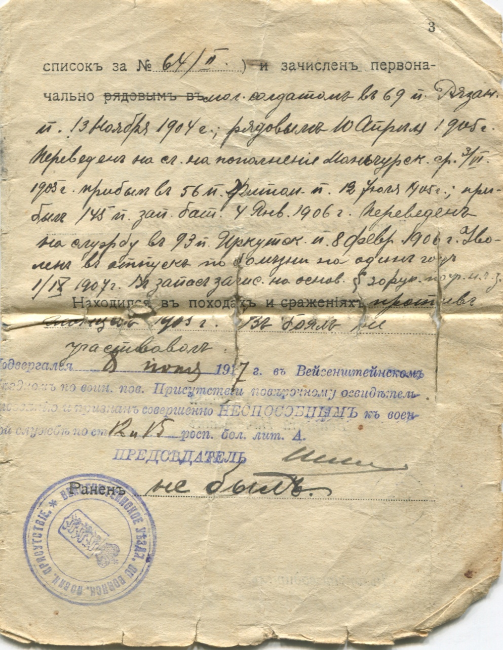 Minu vanavanaonu sõjaväest vabastamise tunnistus. Tema ehitatud majas olen mitu head aastat lapsena suvitanud ning maja ise on siiamaani Koerus püsti.
