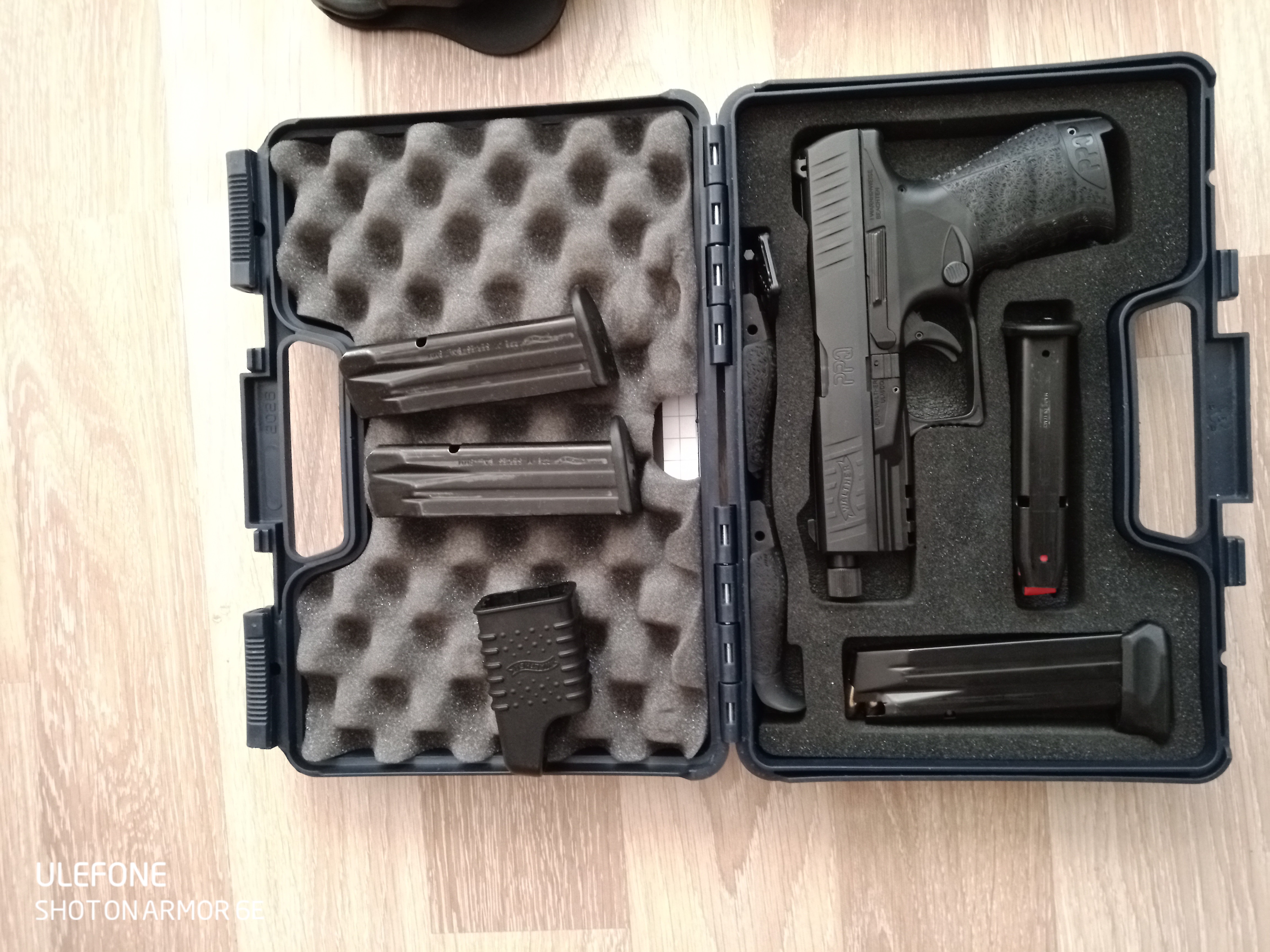 Kaasa kolm kabuuri, neli salve, kiirlaadija, käepidemel vahetatavad põsed kaasas, et relv istuks paremini käes.