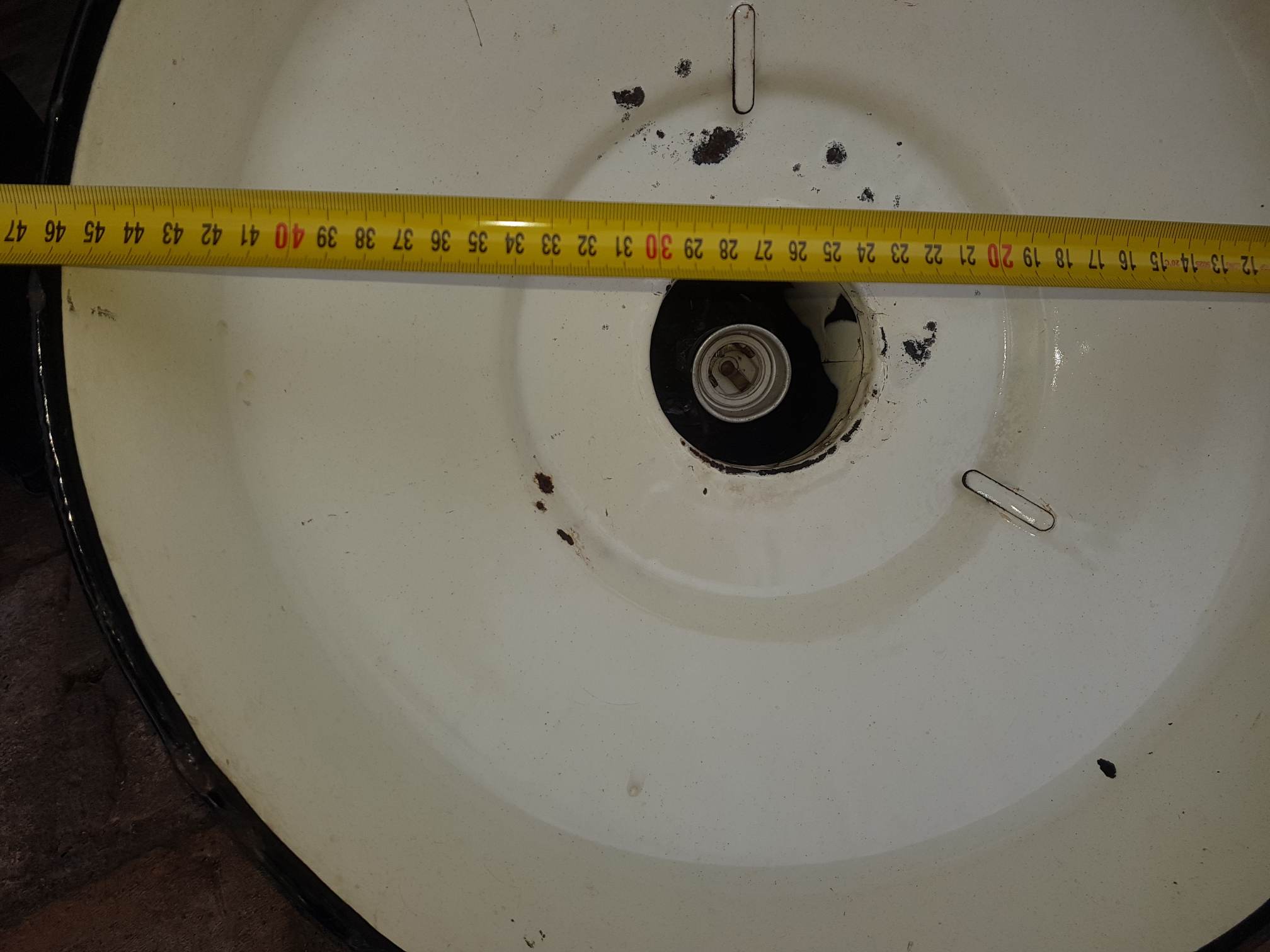 Väike ja suur välivalgusti emailitud kuppel kasarmu ette.
