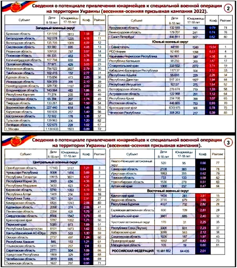 Valdav osa sellistest "ülimotiveeritud" võitlejatest on oma väljundi juba leidnud kas VF armee lepingulistena nn eliitväegedes, sõjakoolides või "Wagner" tüüpi erasõjaväe üksustes. Mingi osa sellistest kõrge moraali ja motiga kodanikest muidugi ei ole veel sõjaliselt rakendatud ja neid üritatakse taustal samuti mobiliseerida, pakkudes esialgu välja vabatahtlikult kohale ilmumist ja lepinguliseks vormistamist. See vabatahtlike võtmine käib üle venemaa, aga tundub olevat ebapiisav, sest mingit meeletut tungi minna Ukrainasse sõtta ei tundu olevat. Loogiline on, et üritatakse rakendada kõiki selliseid ideelisi ja kui neid on saadaval ka nn Junarmija ridades, siis neid ei jäeta kõrvale. Siin pole midagi eriskummalist IMHO. UKR pool afišeerib neid sündmuseid lihtsalt üle, mis on samuti sõjaolukorras arusaadav, sest infosõja punkte tuleb võtta kõikjalt kust aga saab.