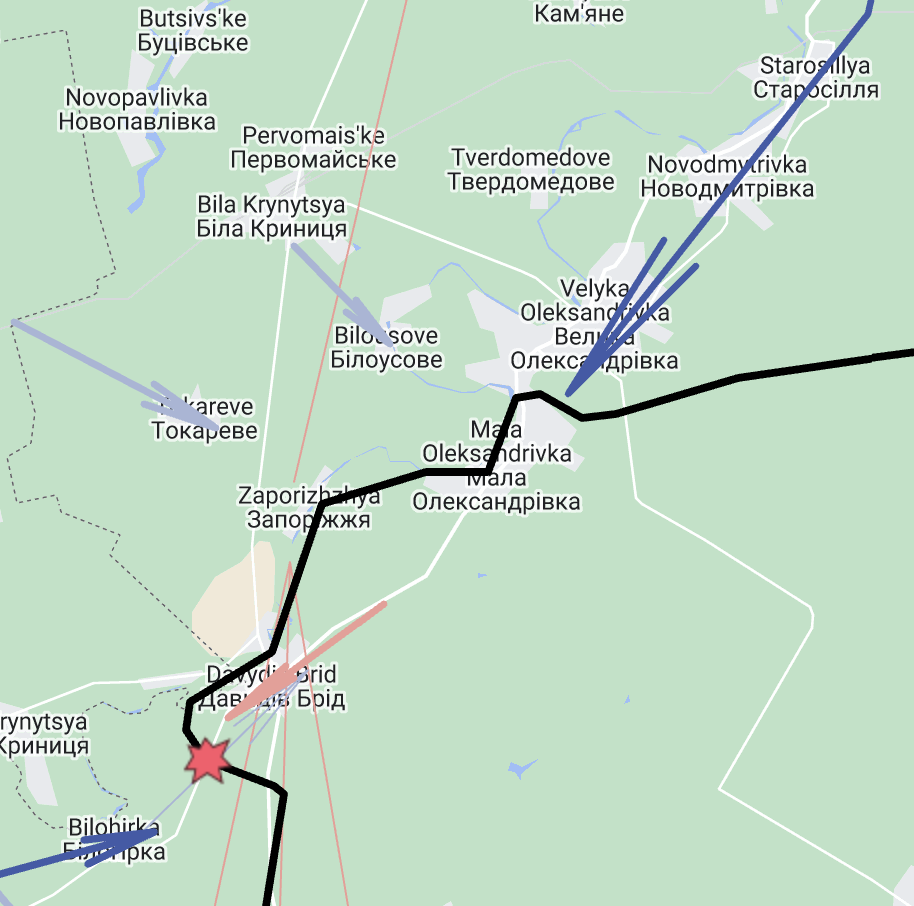 Google mapsi järgi on ukrainlased juba Nova Kamyanka juures, seal edasi on tükk tühja maad. Tundub et Vene lihtsalt liigub eest ära.