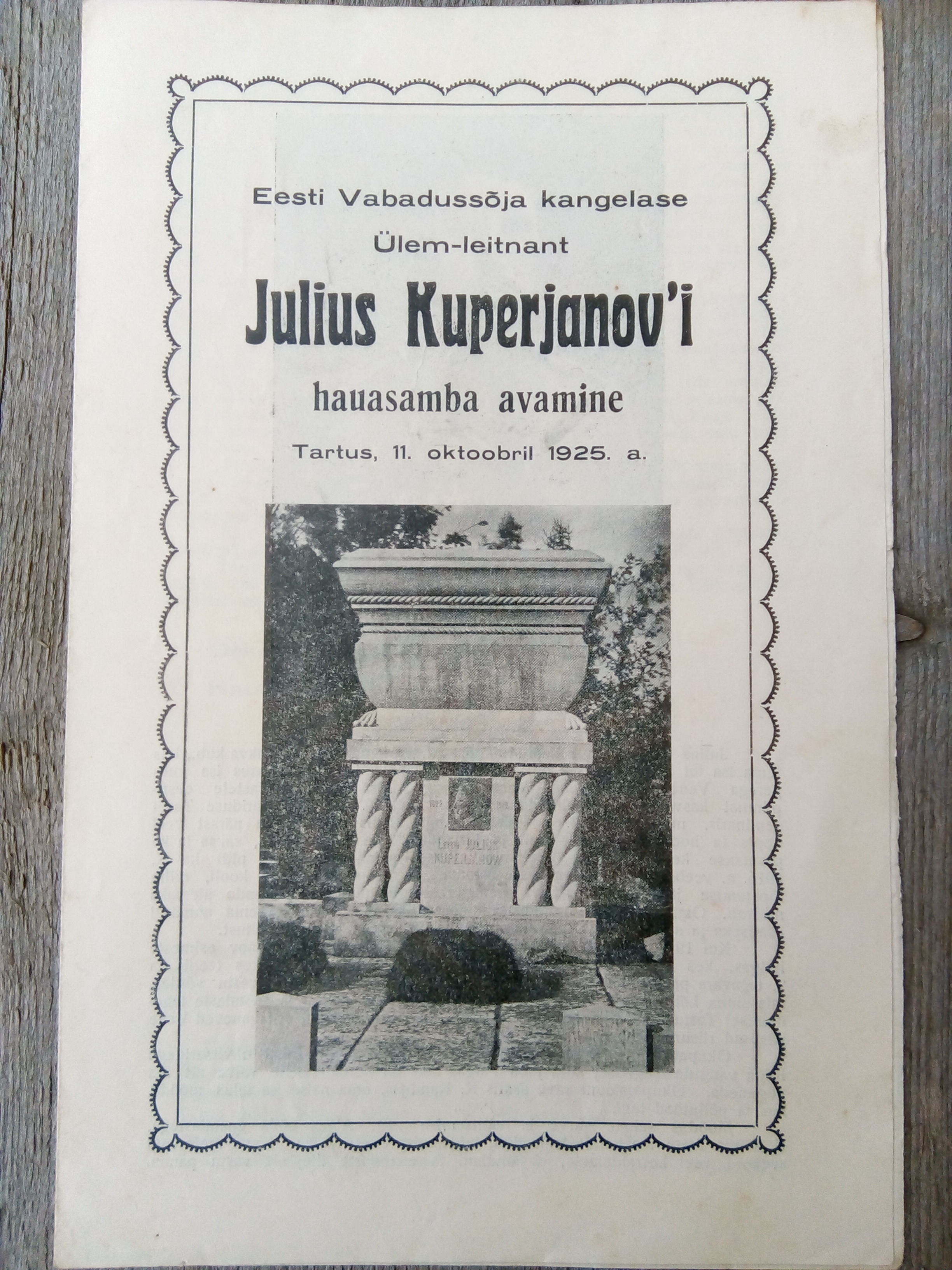 M: J.Kuperjanovi hauasamba avamisbülletään