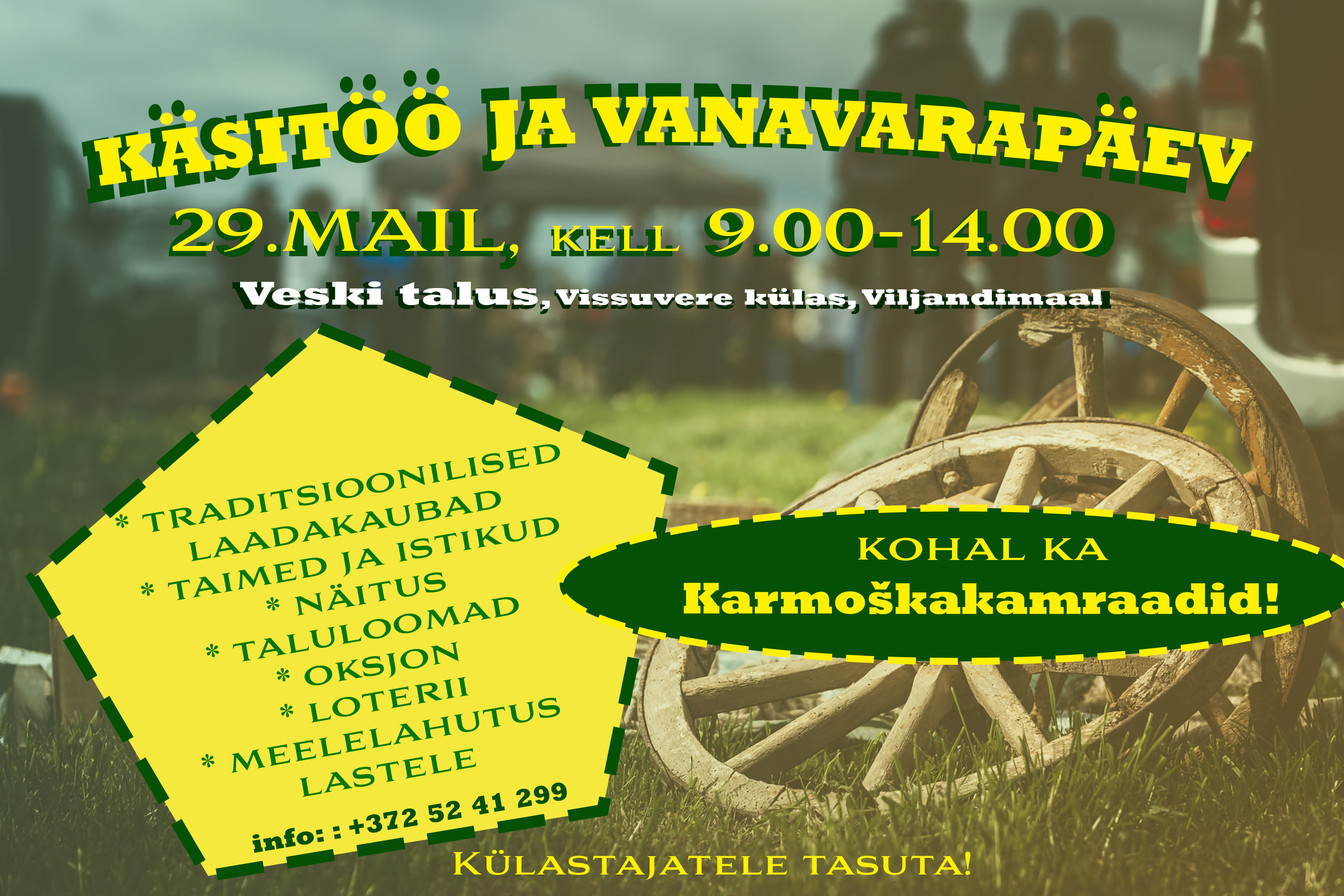 29 mai Vissuveres Veski talus järjekordne Käsitõõ ja vanavarapäev. 10 .30 läheb oksjonile Saksa militaarkola.
