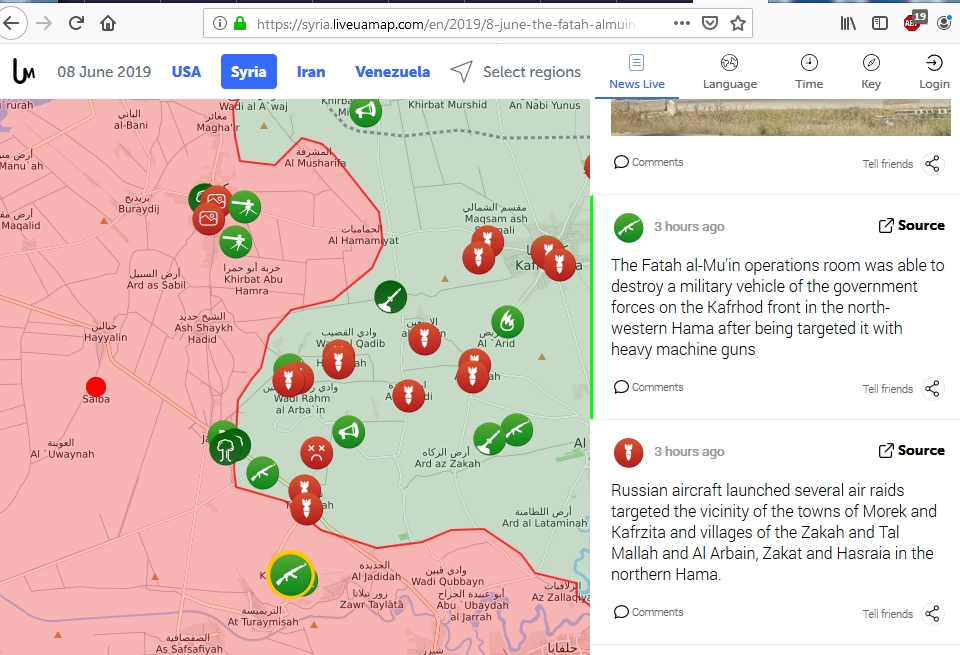 Pea siht on Rohelistel Kafr Nabotha ja Kernazi tagant varustusteed ära lõigata ja sellega sundida Punased oma senistest vallutustest loobuma. Punased võivad üritada uut suunda avada ja sihtida Morekit, et seega rünnakut riivistada. Mingeid tehnikakolonne on Moreki suunal pildistatud. Aga võib ka lihtsalt desinf olla. Seni kuni Rohelised edasi pressivad, nad ilmselt endiselt näevad võimalust ja omavad reserve, et eesmärki saavutada. Kui plaan hüljatakse, siis toimub kiire taganemine ja võimalik, et ka Latamneh eend hüljatakse. Praegune madin rapib mõlemat poolt. Venelased istuvad Mahratehis ja üritavad Roheliste tiivalt olukorda koordineerida. Ilmselgelt on nad tegevuses rohkem sees, kui neile meeldiks. Loodan, et Roheliste rünnak areneb ja venkud peavad hakkama reaalselt olukorda päästma. Praegu ikkagi väga palju VF droonindus ja lennuvägi nopib Roheliste tehnikat ja peidupaiku. Äärmiselt ebapraktiline ja kallis küll, aga Punased on lihtsalt nüüdseks juba nii harjunud steroididel sõdima, et ilma lennukite ja rasketehnikata ei liigu jalavägi tõsiselt vastuhakkava vastase puhul essugi.