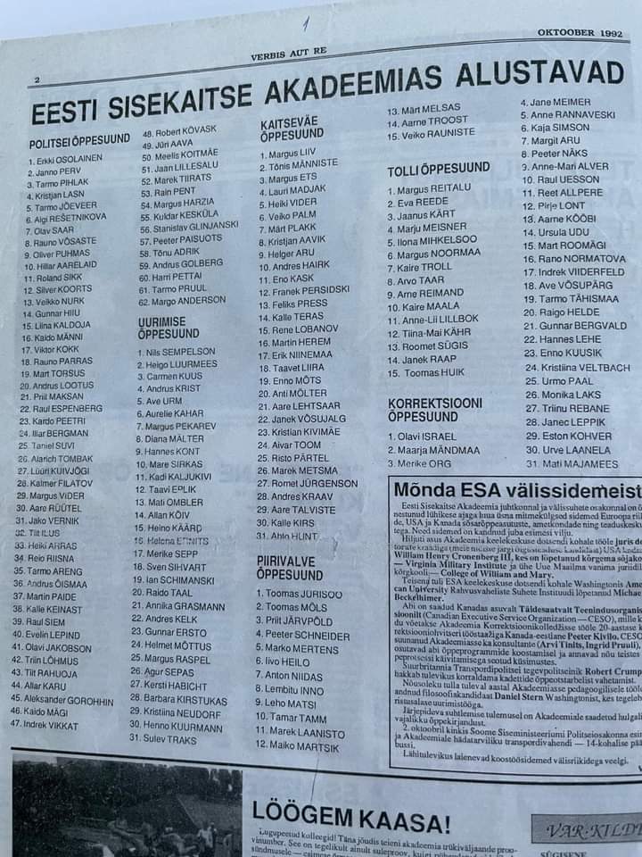 Soovitan toonaste õppejõududega suhelda - nad kinnitavad Sulle ühest suust: oli küll piirivalve eriala kadettidega tegemist... ja mite vähe.
