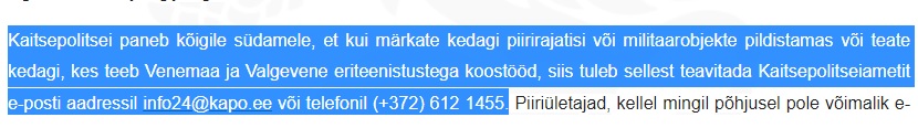 Antud teemas on asjakohane huvilisel avada https://kapo.ee/et/content/kaitsepolits ... sete-eest/