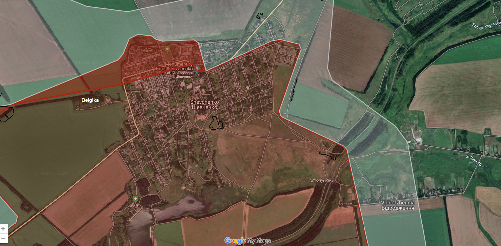 Miks see peaks nii olema, on kaardile vaadates raske mõista. Ma seni ikka arvasin, et Ševtšenko vallutamine oli osa Pokrovkskist lõuna poolt möödumisest, et raudtee läbi lõigata. Nii kaugele pole venelased praegu jõudnud, rinne on sellest Ševtšenkost Solona jõkke suubuva oja joonel. Raudteeni on sealt linnulennult 4 km.Turist 47 kirjutas: ↑16 Dets, 2024 22:57Väide.