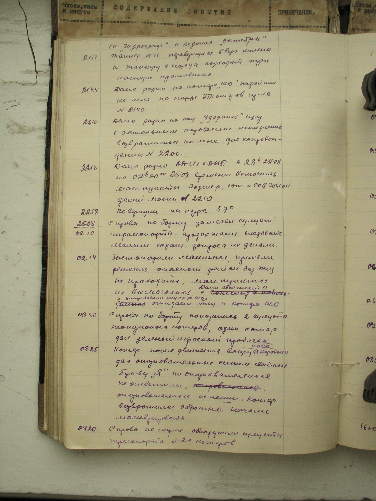 kommentaariks enda poolt: Tundub kuidagi napisõnaline olevat see päevik. Pole kiiruseid, kursse, peilinguid, huvitav, kas tüürimees pidas eraldi päevikut. Lisaks oli laeval ka PBL juhtkond, kellest siin päevikus samugi sõna pole poetatud?