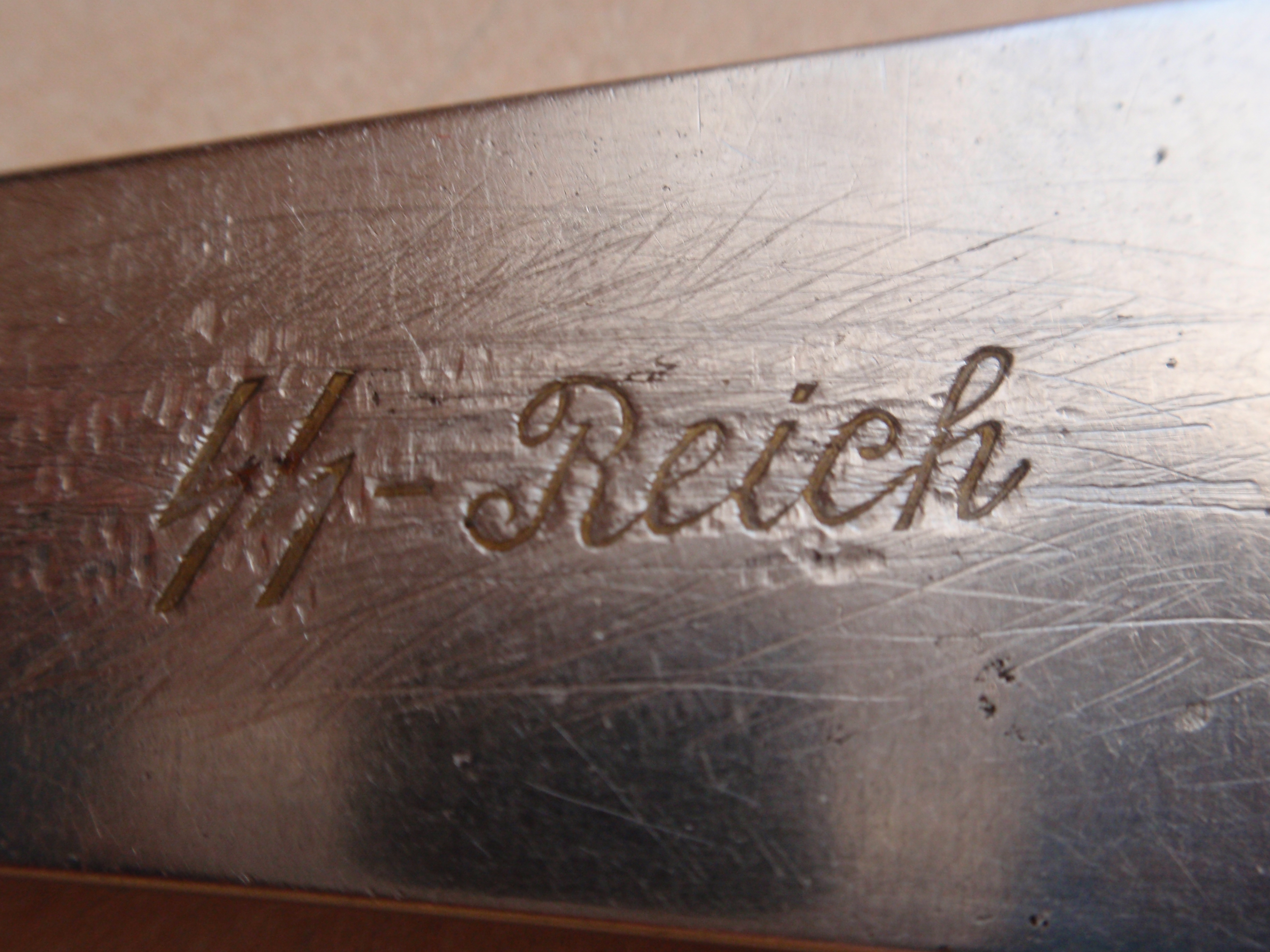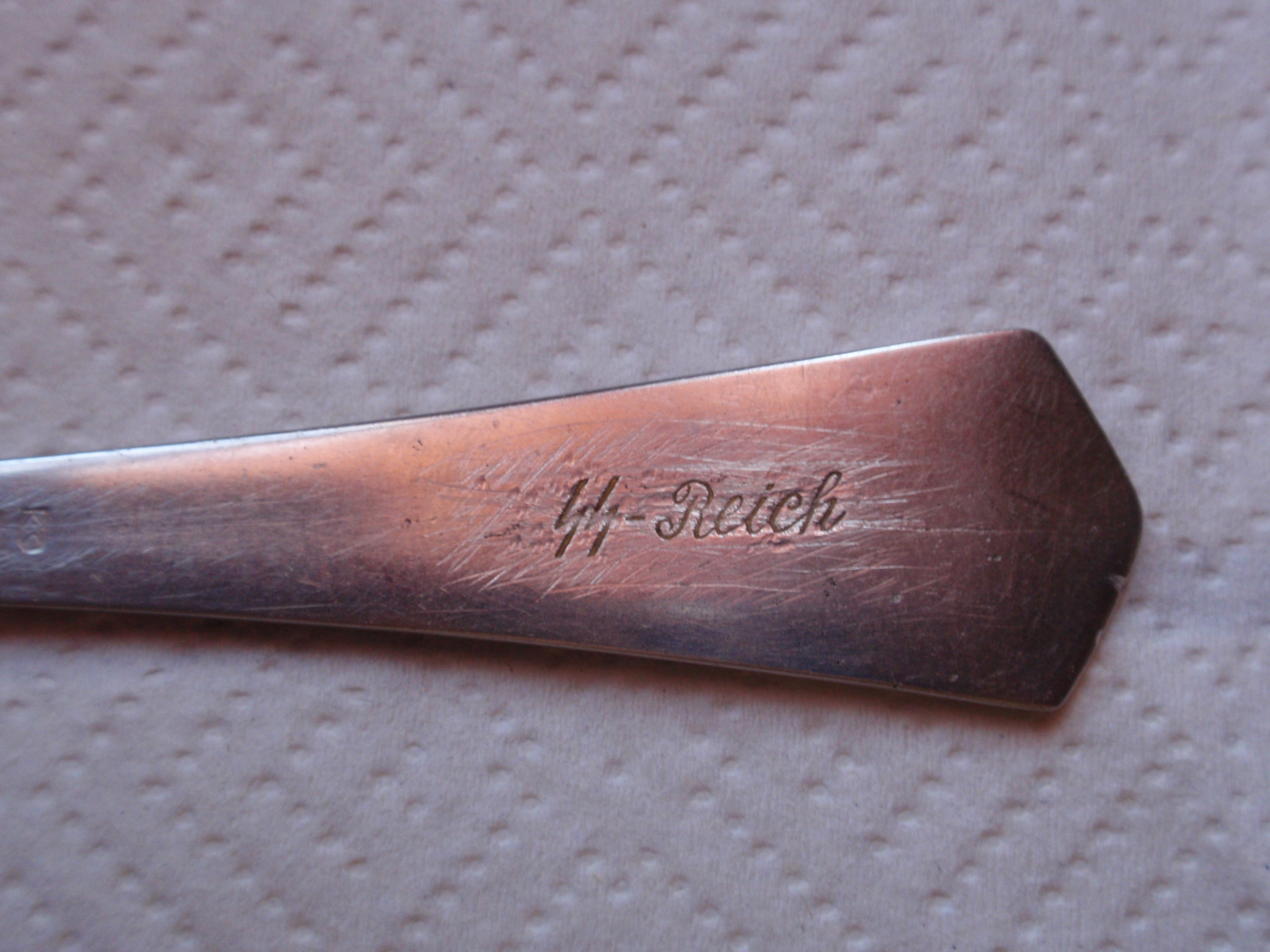 Ainukesed mulle teadaolevad SS-nõud, mida 100% Eestist leitud on, olid ca 10 aastat tagasi Kloogalt leitud klaaspudelid, milledele juba tehases peale valatud mingid kirjad (vist oligi Waffen-SS). Veel olen näinud kärakapudeleid, millede siltidel miskid SS-templid ja mis samuti 100% õiged asjad. Paari Eestist leitud SS-markeeringuga välipudeli korki olen ka trehvanud. Igasugu nuge-kahvleid, rääkimata siis taldrikutest-tassidest, mulle küll ei meenu, et oleks näinud, ikka ainult vuflood. Välguasju kukuti välismaal vorpima enam-vähem 10. mail 1945, terve maailm upub nendesse produktidesse, iseküsimus on, kuidas ja kas võisid sellised esemed sattuda meie maale ütleme 60-70-dail aastatel. Antud kahvli puhul oleks praegusele infole tuginedes tegu puhtalt ilusa loo ostmisega, ese ise tahaks näitamist WAF-is laiadele ringkondadele.