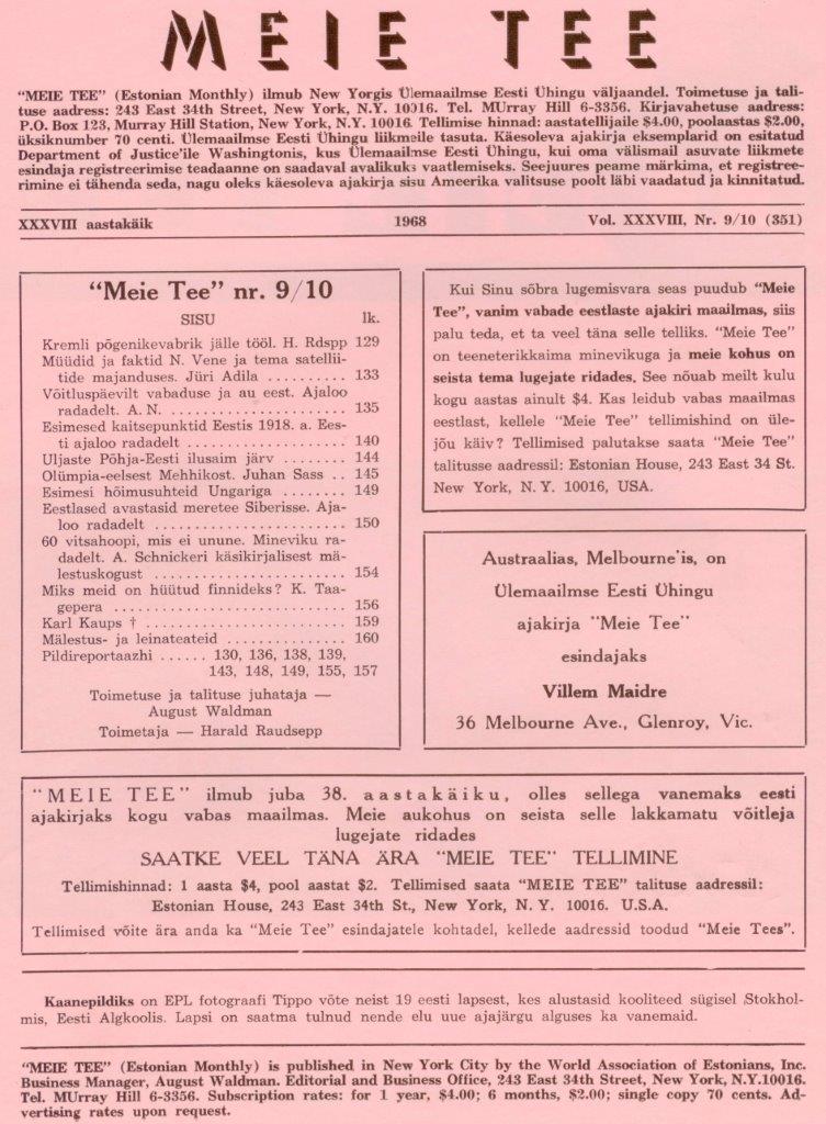 Aega on küll palju möödas, aga meeles on et see oli vist ajakirjast "Meie Tee", kuid täpselt millisest numbrist?, seda peaks uuesti uurima hakkama. Kuid kui vaja võib ju neid numbreid lapata. http://erb.nlib.ee/?kid=13142501&oid=cb1df155LauriKreen kirjutas:Kas selle raamatu / loo kohta ei saaks rohkem teavet?Arensburger kirjutas:Panen siia üles ühe 60-nendatel aastatel väliseestlaste poolt avaldatud loo, mis kirja pandud kapten K.Rotschildi märkmete põhjal. Minu meelest annab see lugu väga hea ülevaate tolle aja olukorrast.
