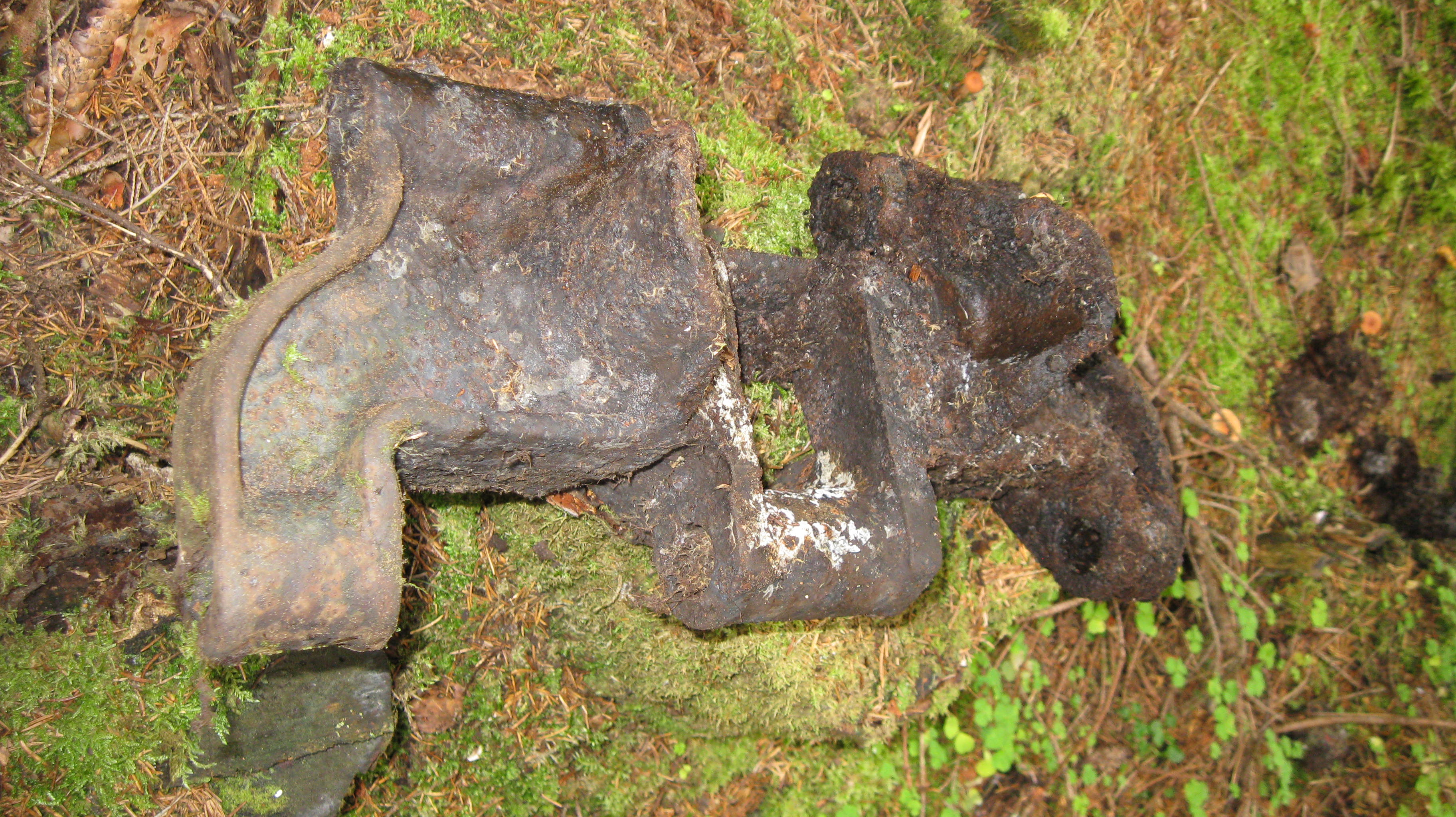 Täna jäi riistade alla ja kaamera ette sihuke. Antud paigas lahingutegevus toimus suvesõja ajal, samas see lüli oli maapinnal samblakihi all. Miski metsatraktori oma? Markeeringuid kohapeal eriti ei tuvastanud, mõned numbrid ainult (selgelt näha 41). Mõõtude võtmiseks suitsupakki peale asetada ei taibanud, aga silma järgi tundus laiem kui RSO-de oma.